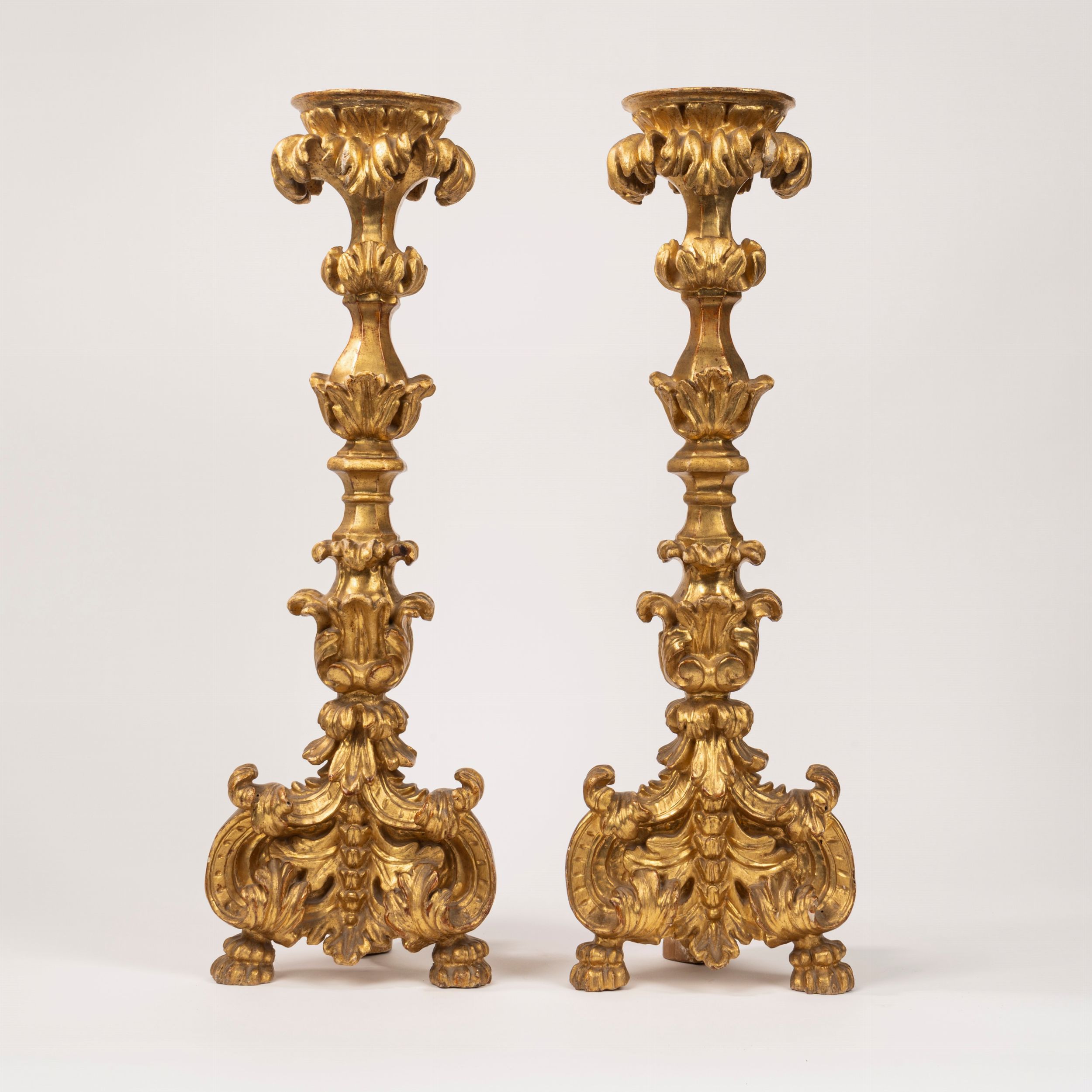 Torcieri in legno intagliato e dorato, secolo XVII-XVIII