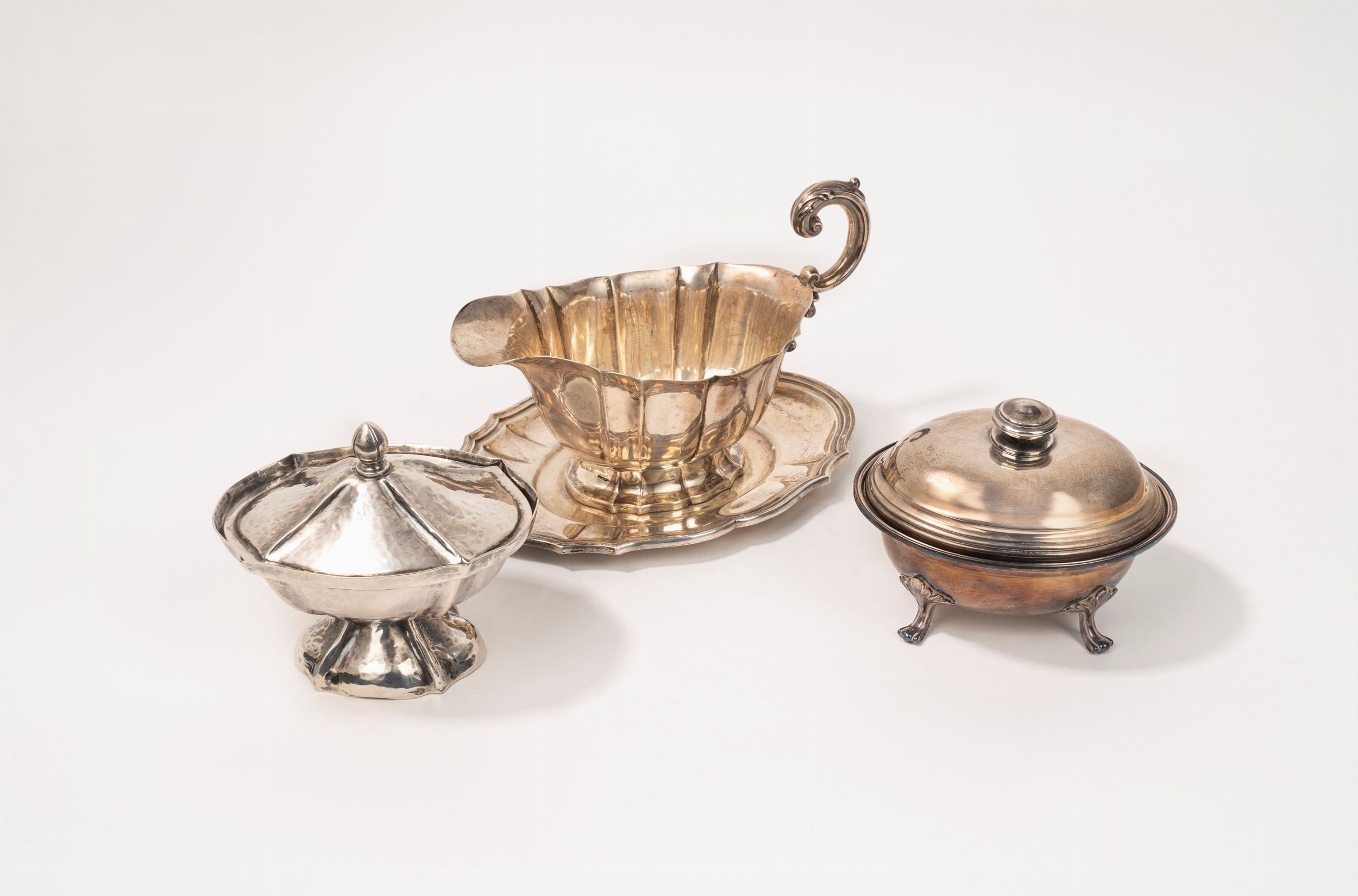 Una salsiera e due zuccheriere in argento, secolo XX