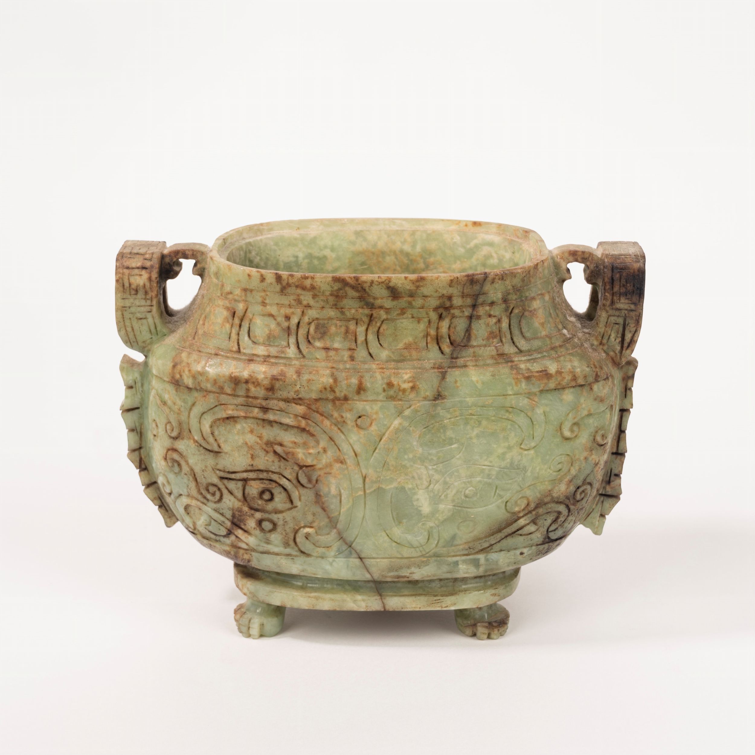 Vaso biansato in stile arcaico in pietra dura verde, Cina secolo XX