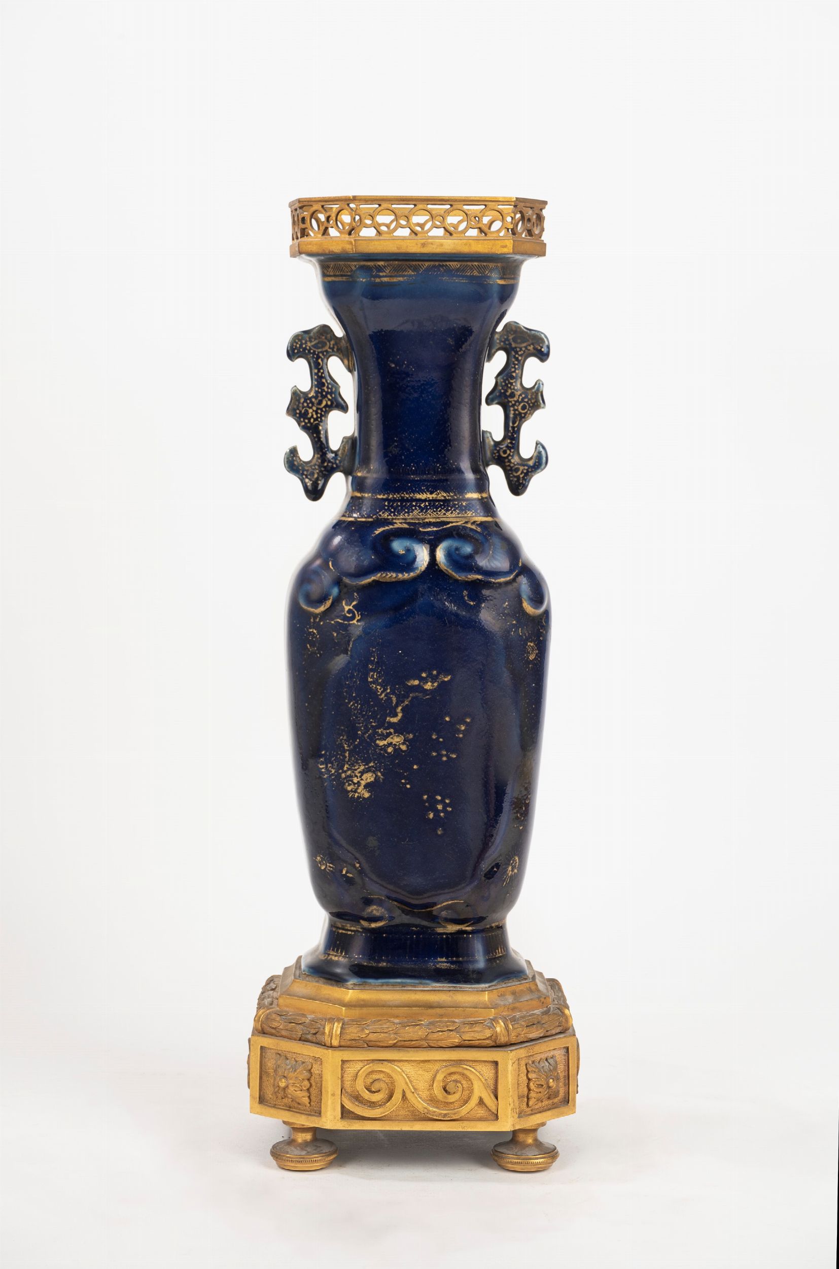 Vaso biansato montato a lume in porcellana blu con decori in oro, Cina, dinastia [..]