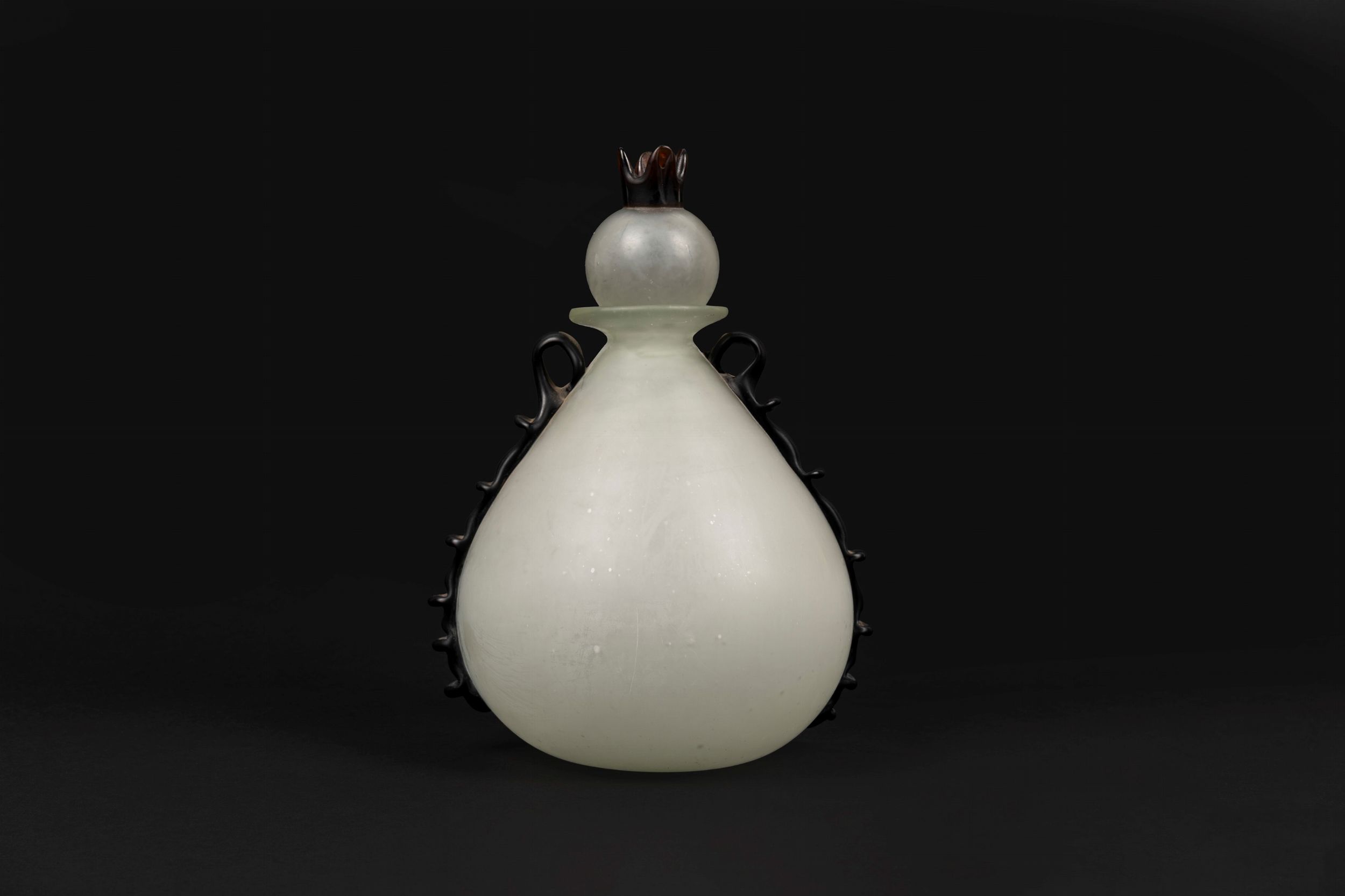 bianco satinato con tappo e applicazioni a caldo color bruno con pinzature