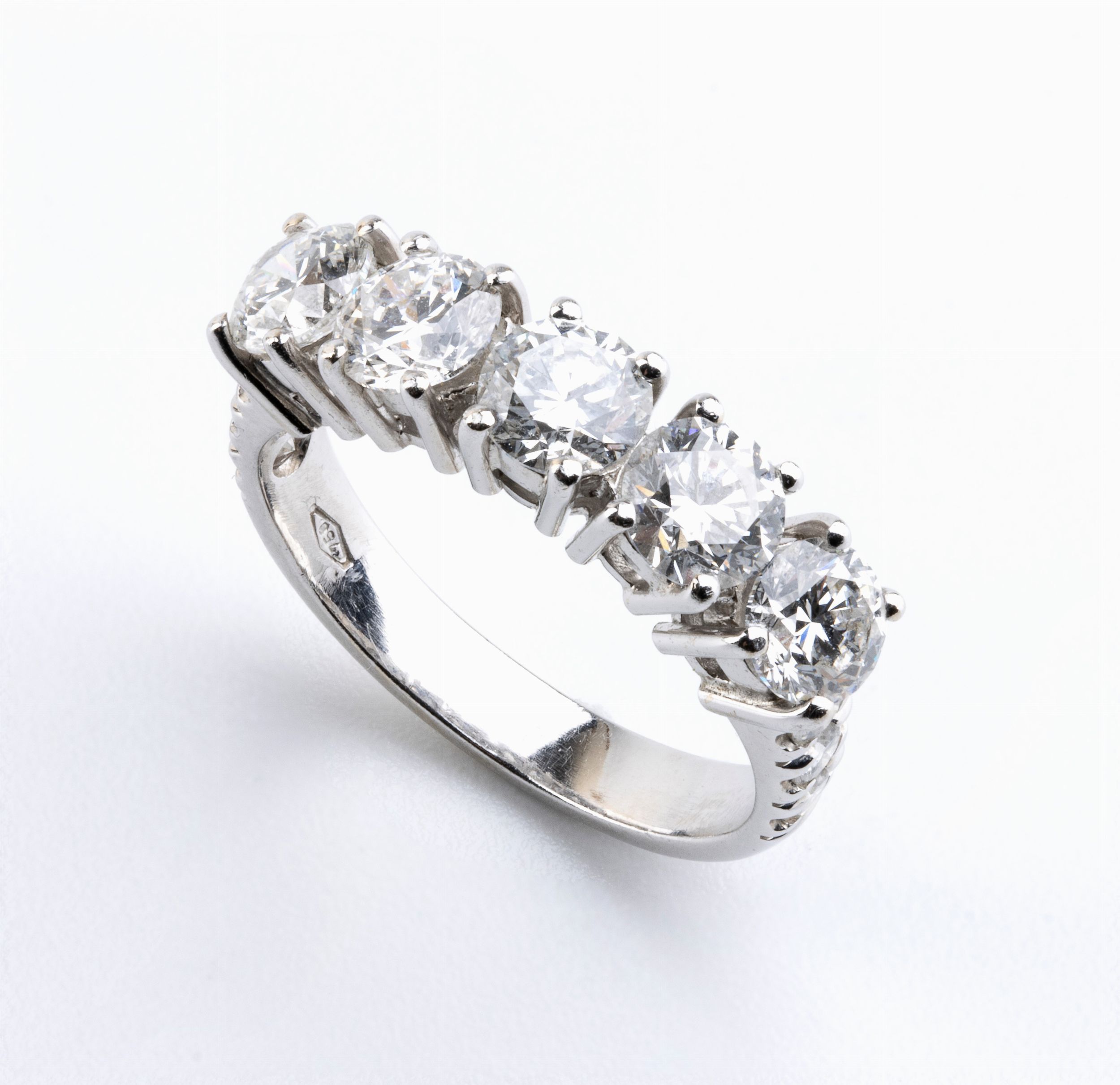 in oro bianco 18k. N. 11 diamanti di forma rotonda, taglio brillante, circa 2.10 ct G-H, VS-SI. Punzonato '750'. Misura IT 17 - US 8. Peso 5.6 gr. Stato di conservazione: ***** eccellente.