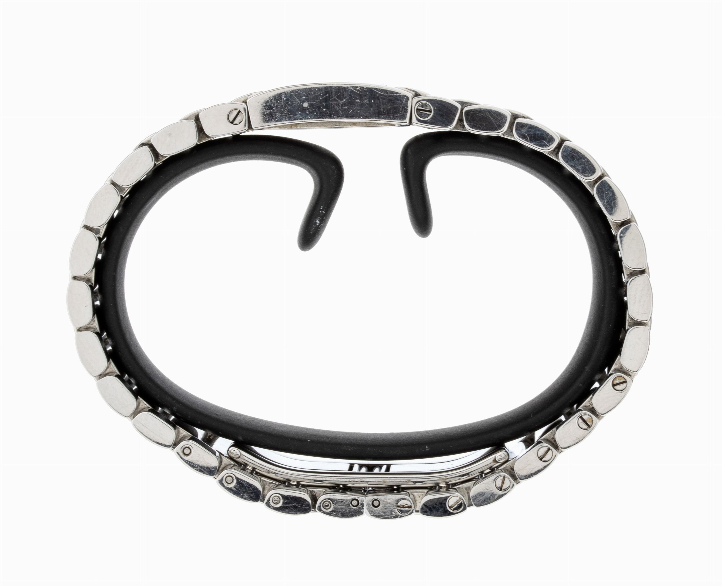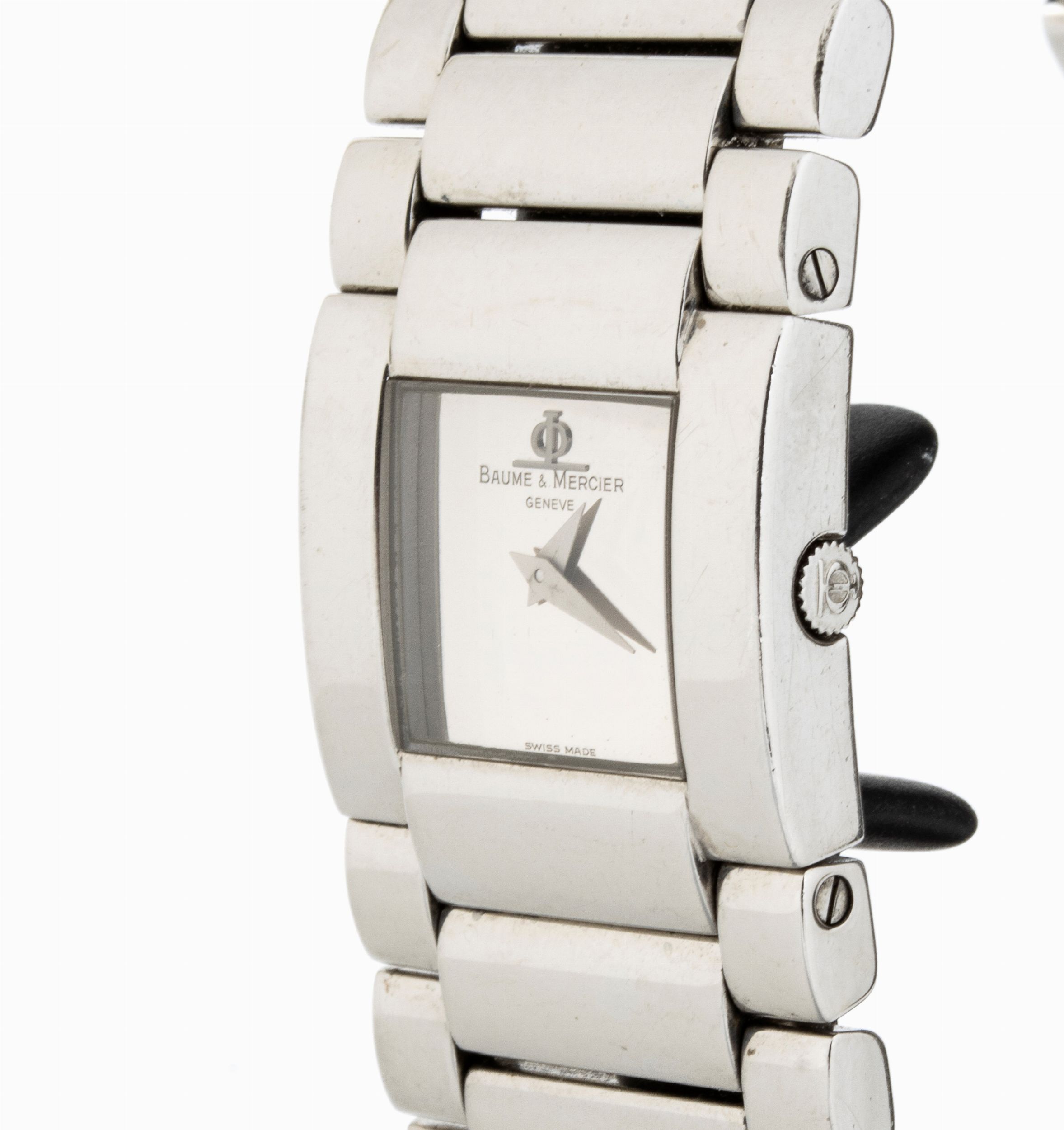 Anni 2000 cassa in acciaio con bracciale integrato, quadrante in acciaio a specchio, movimento al quarzo. Referenza MV045197, matricola 4074398. Dimensioni cassa: 24 x 24 mm. Peso lordo: 101 gr. Stato di conservazione: **** buono, attualmente marciante, presenta alcuni graffi.