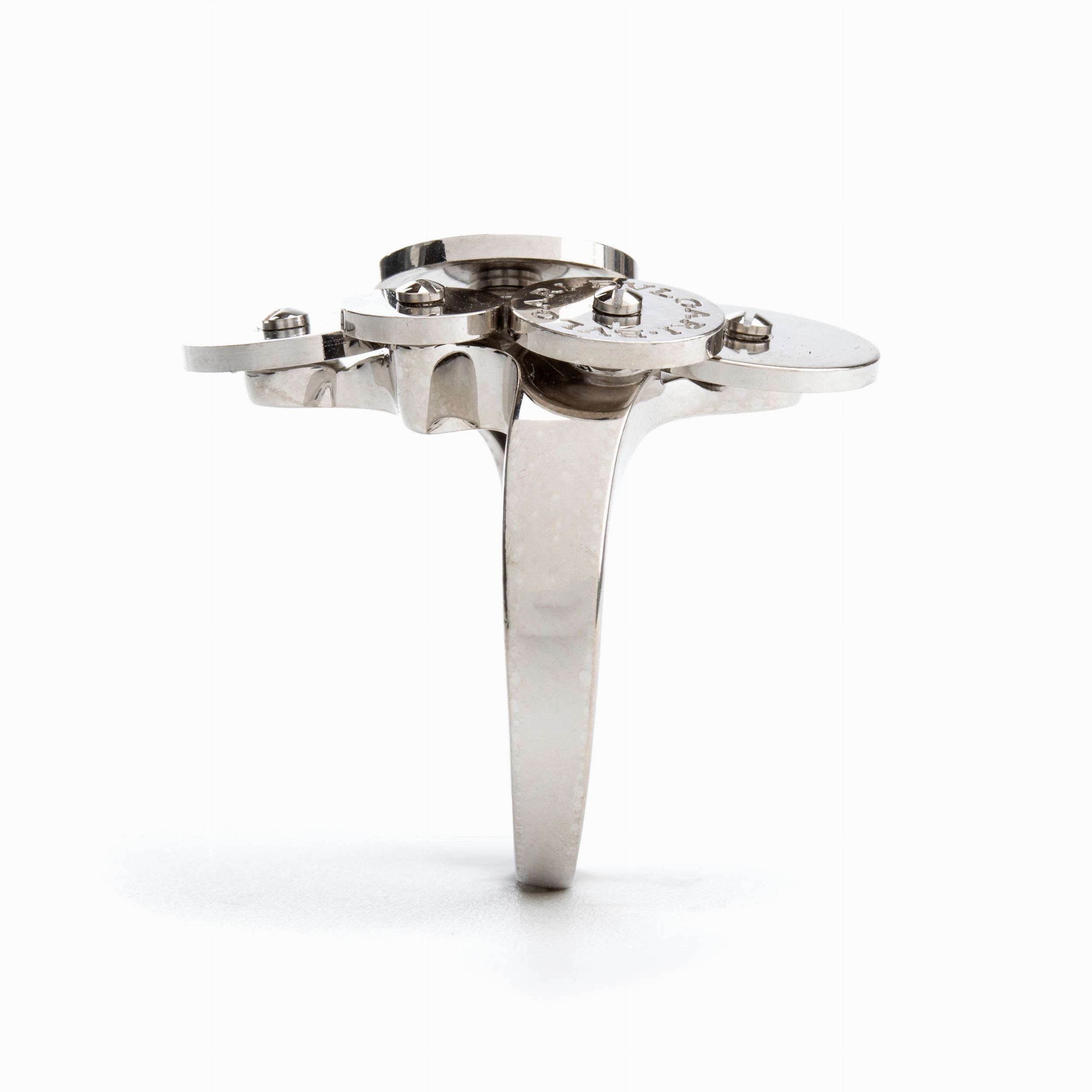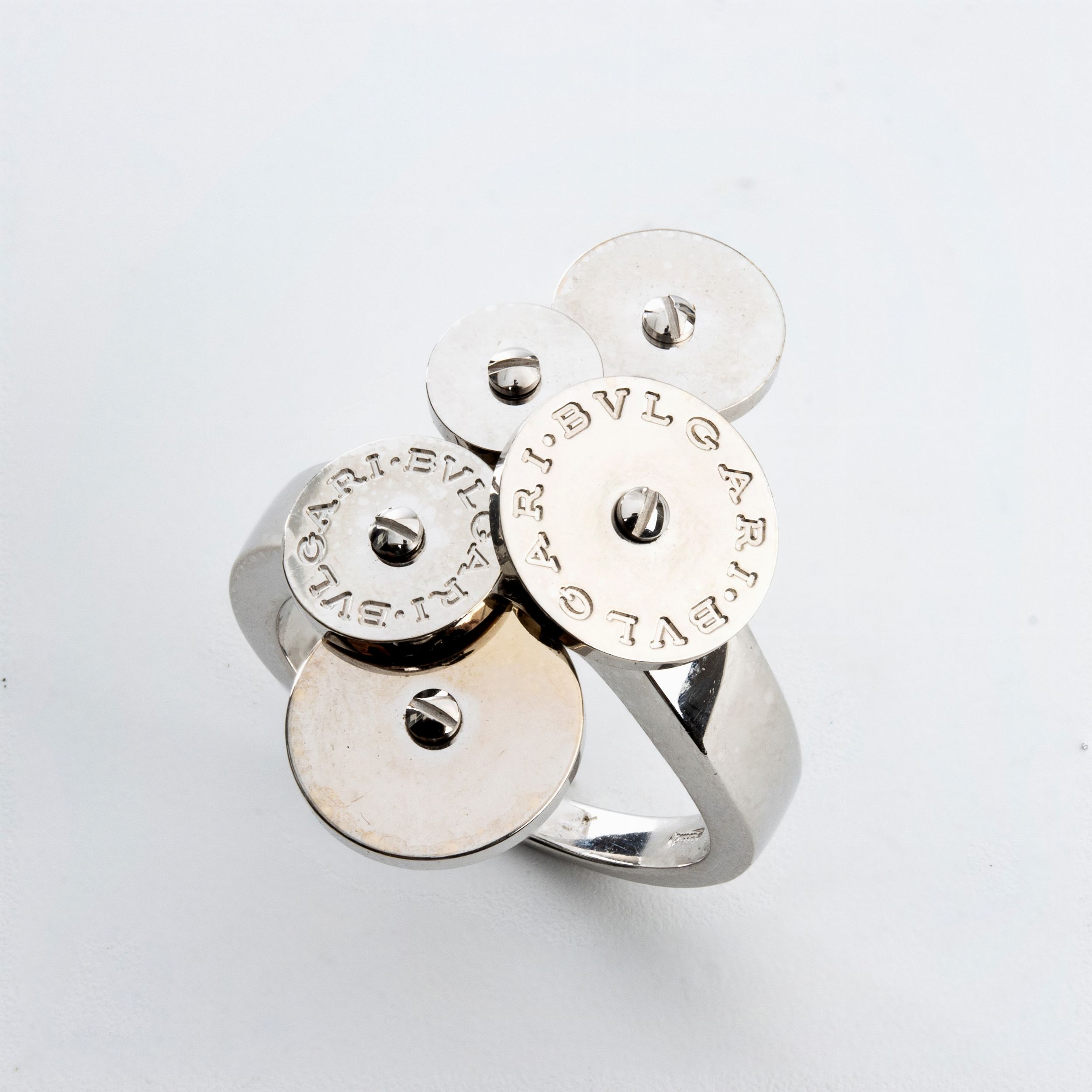 in oro bianco 18k. Firmato BVLGARI.  Punzonato '750 - 2337 AL - MADE IN ITALY'. Misura IT 13 - Misura US 7. Peso 9,5 gr. Stato di conservazione: ***** eccellente.