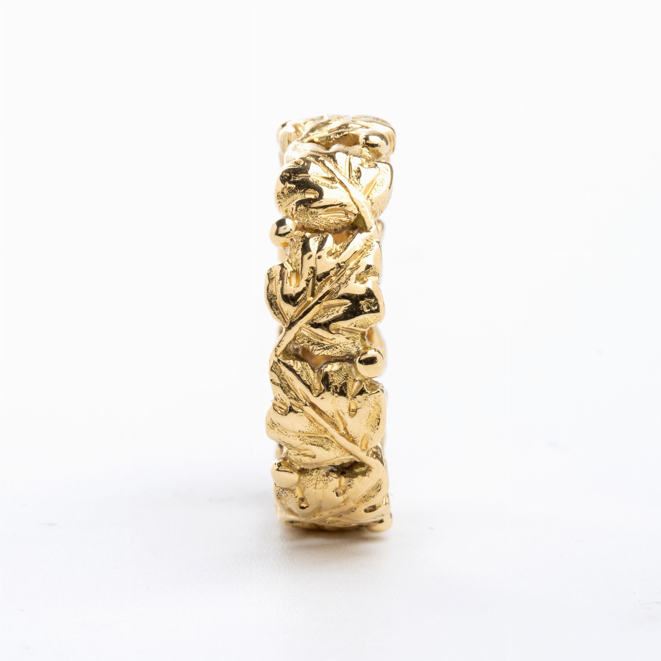 con motivo di foglie in oro giallo 18k. Firmato FEDERICO BUCCELLATI. Punzonato '750 - 1189 MI'. Misura IT 17 - Misura US 8 Peso 6,4 gr. Stato di conservazione: **** buono.