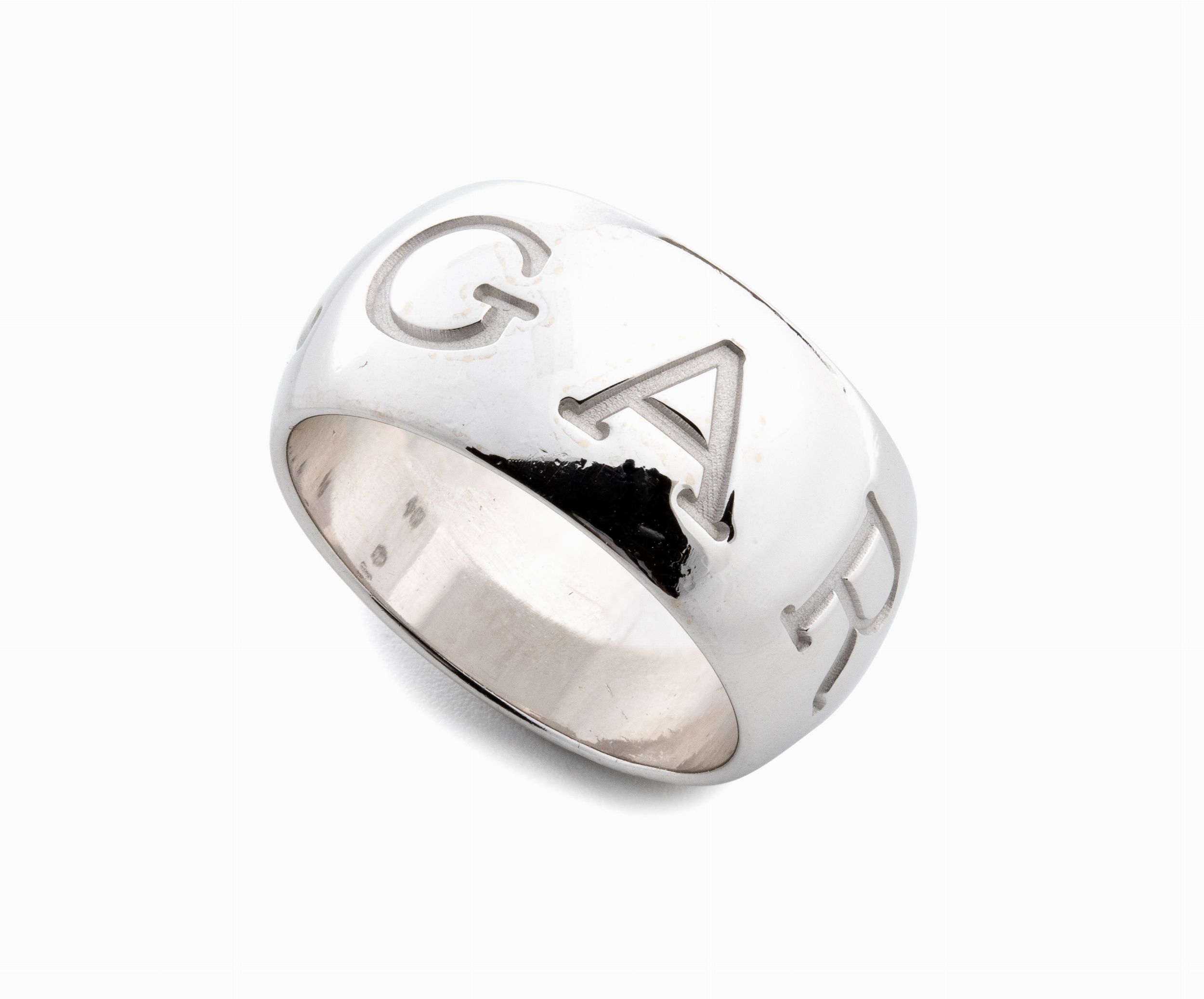 in oro bianco 18k. Firmato BVLGARI. Punzonato: '750 - 2337 AL - MADE IN ITALY- 55'. Misura IT 14 - Misura US 7. Peso 12,5 gr. Stato di conservazione: ***** eccellente.