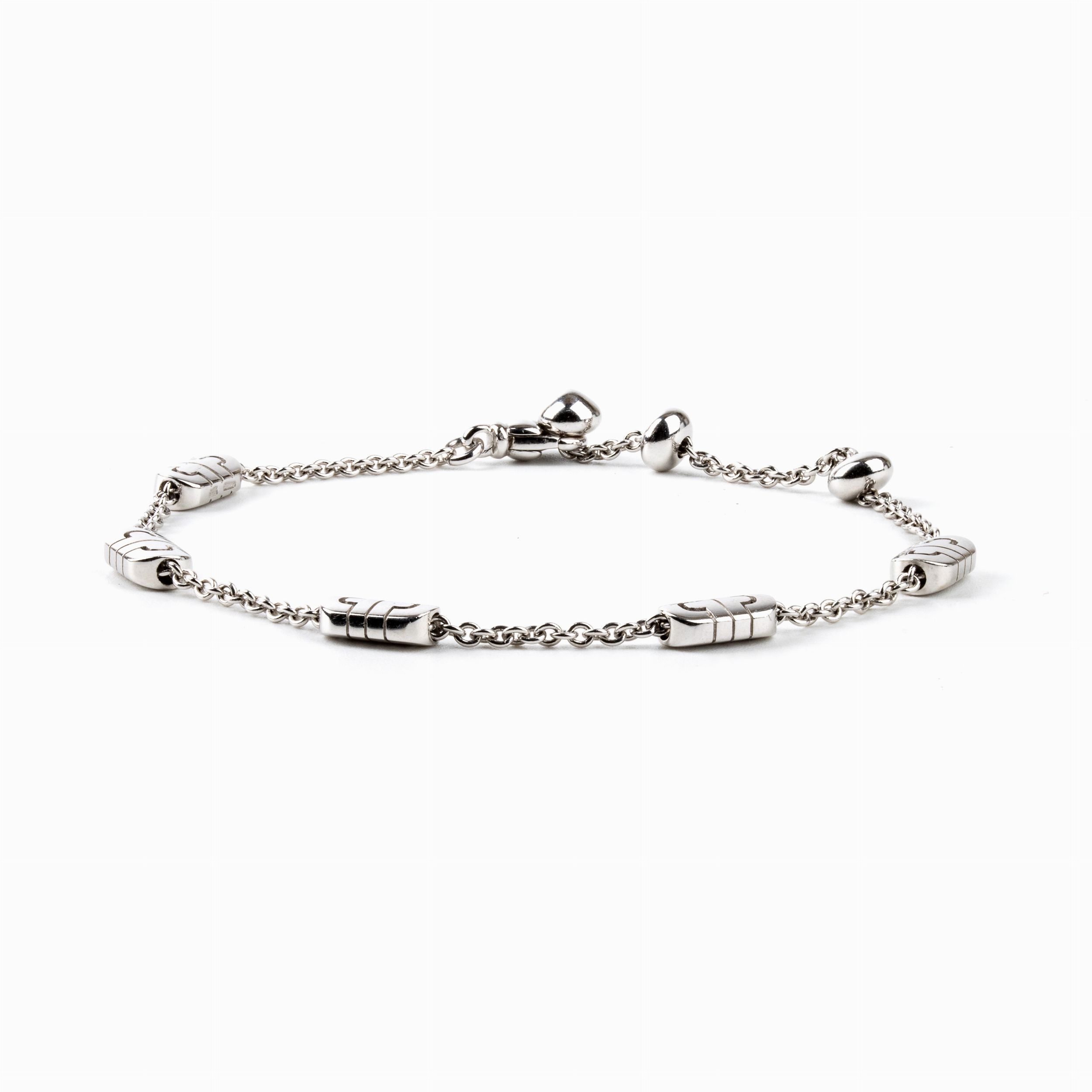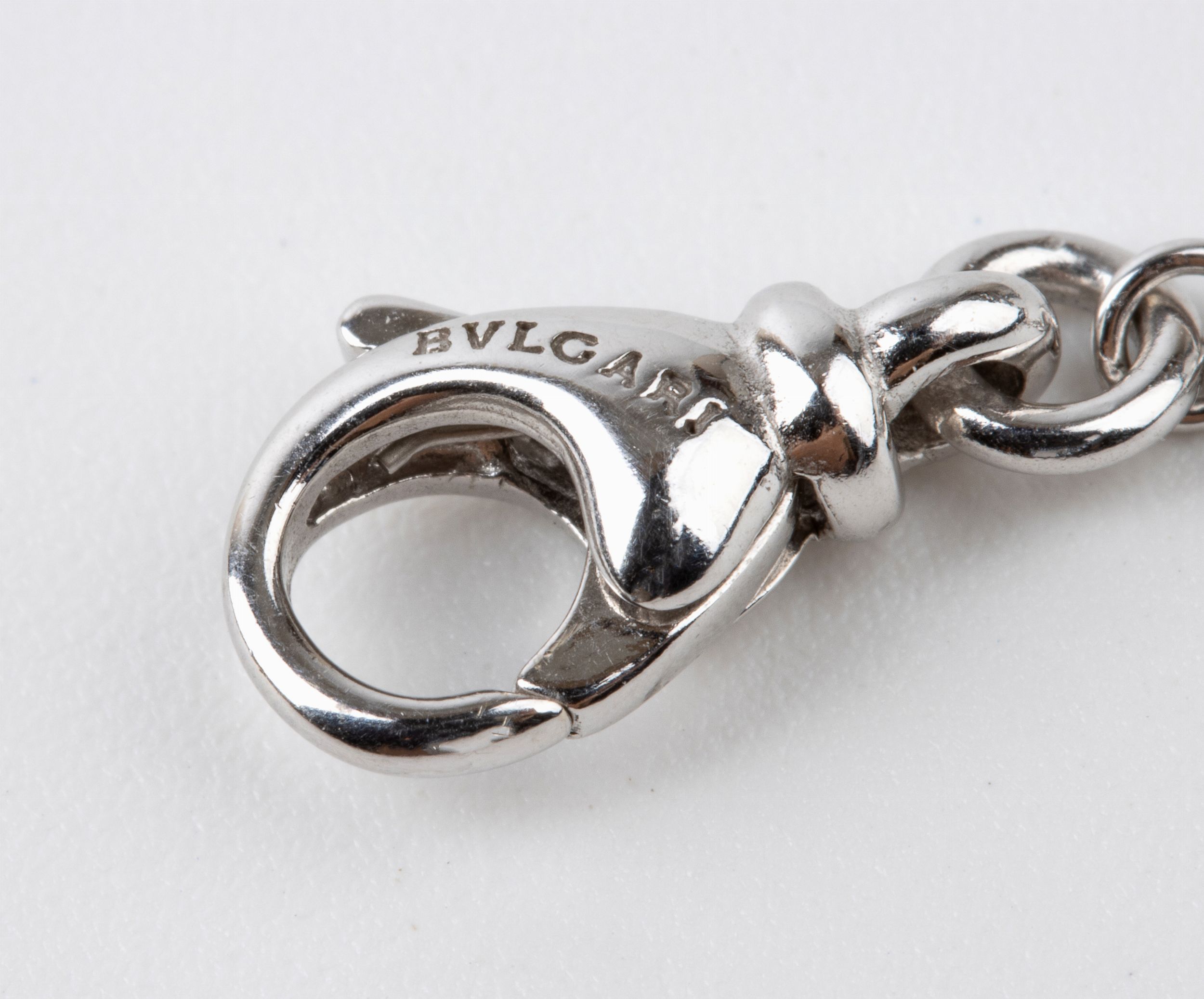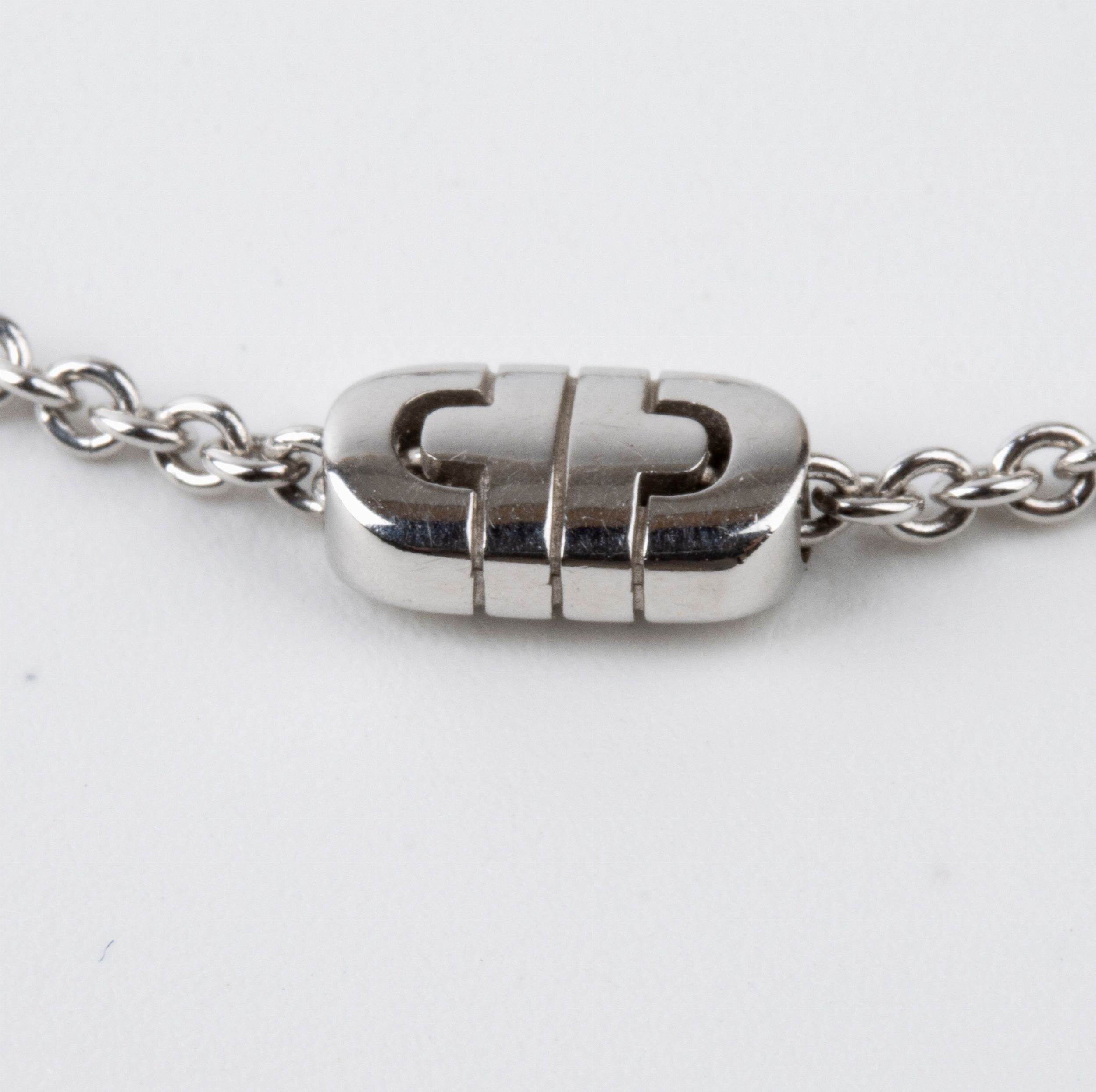 in oro bianco 18k, firmato BULGARI. La collezione parentesi è stata creata ispirandosi alle linee e segni della grafica matematica e di punteggiatura. Punzonato '750 - 2337 AL - MADE IN ITALY - BULGARI'. Lunghezza: 19,5 cm. Peso: 9.8 gr. Stato di conservazione: ***** eccellente.