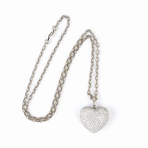 Girocollo e pendente a cuore in oro e pavé di diamanti