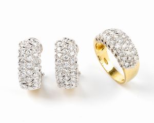 Demi parure composta da un paio di orecchini ed un anello in oro e diamanti