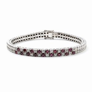 Anni '50 impreziosito da n. 36 rubini di forma rotonda, taglio composito, circa 2.00 ct, e n. 36 zaffiri di forma [..]