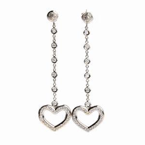 con motivo di cuori concentrici in oro bianco 18k, incastonato con diamanti rotondi, taglio brillante, circa 2.00 [..]