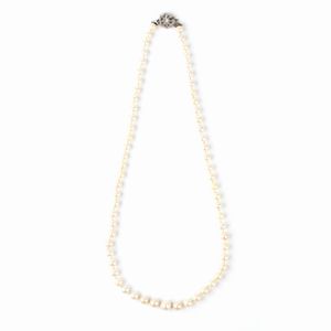 ad un filo di perle coltivate d'acqua salata disposte in gradazione, fermezza incastonata con n. 1 diamante di [..]