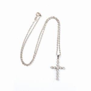 in oro bianco 18k, con catena a maglia forzatina a cui è sospeso un pendente a forma di croce latina, incastonata [..]