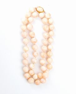 composto da un filo di sfere di corallo rosa (corallium spe. nov.) disposte in lieve gradazione, fermezza in oro [..]