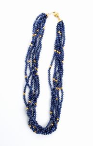 composto da un filo di sfere di lapislazzuli in disposizione graduata, separate da distanziali in piccole sfere [..]