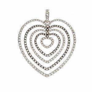 con motivo di cuori concentrici in oro bianco 18k, incastonato con diamanti rotondi, taglio brillante, circa 2.00 [..]
