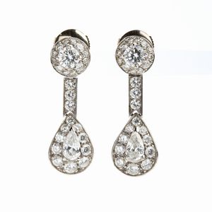 in oro bianco 18k, decorati con pavè di diamanti. N. 02 diamanti di forma a goccia, taglio brillante modificato, [..]