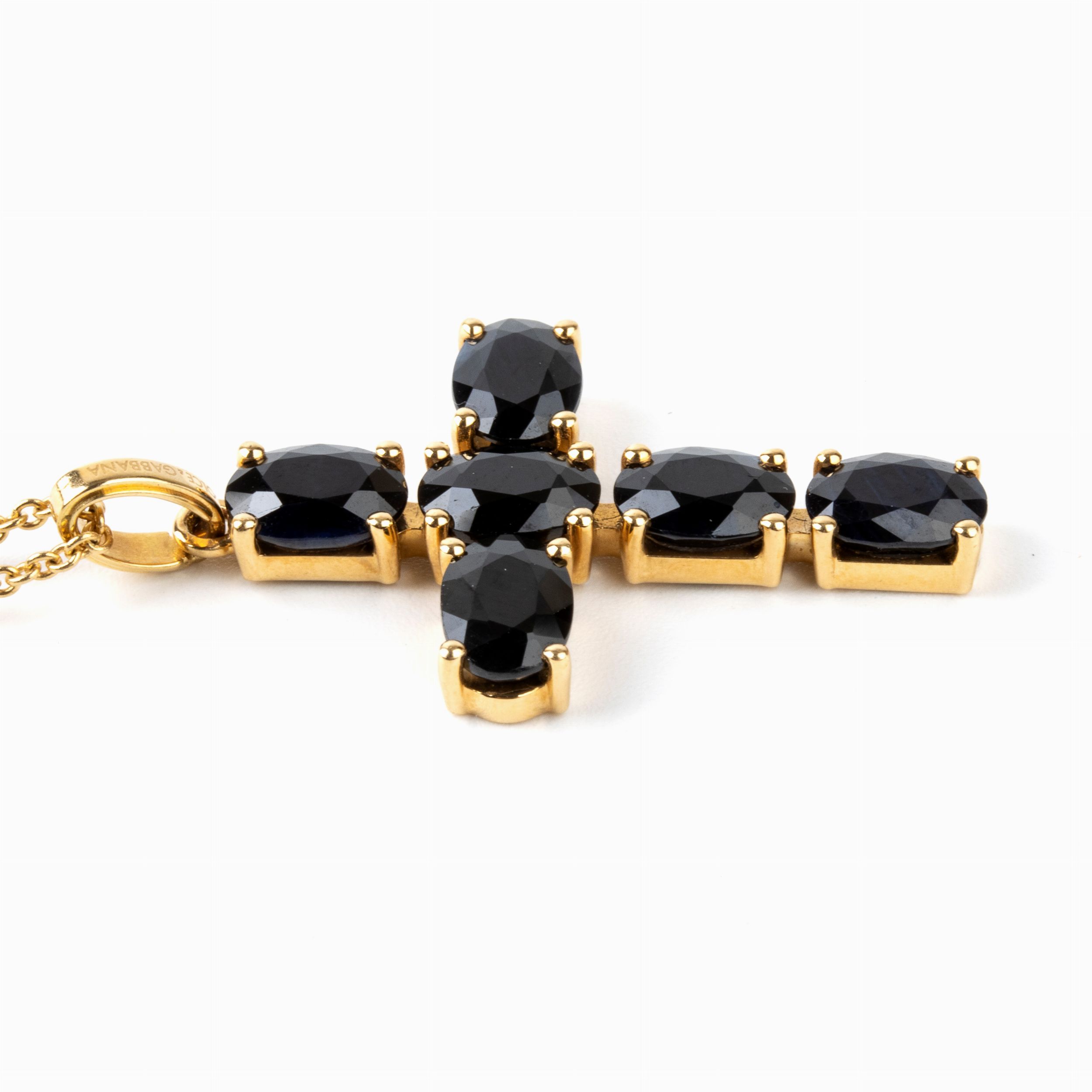 Girocollo con croce pendente FAMILY in oro e zaffiri neri