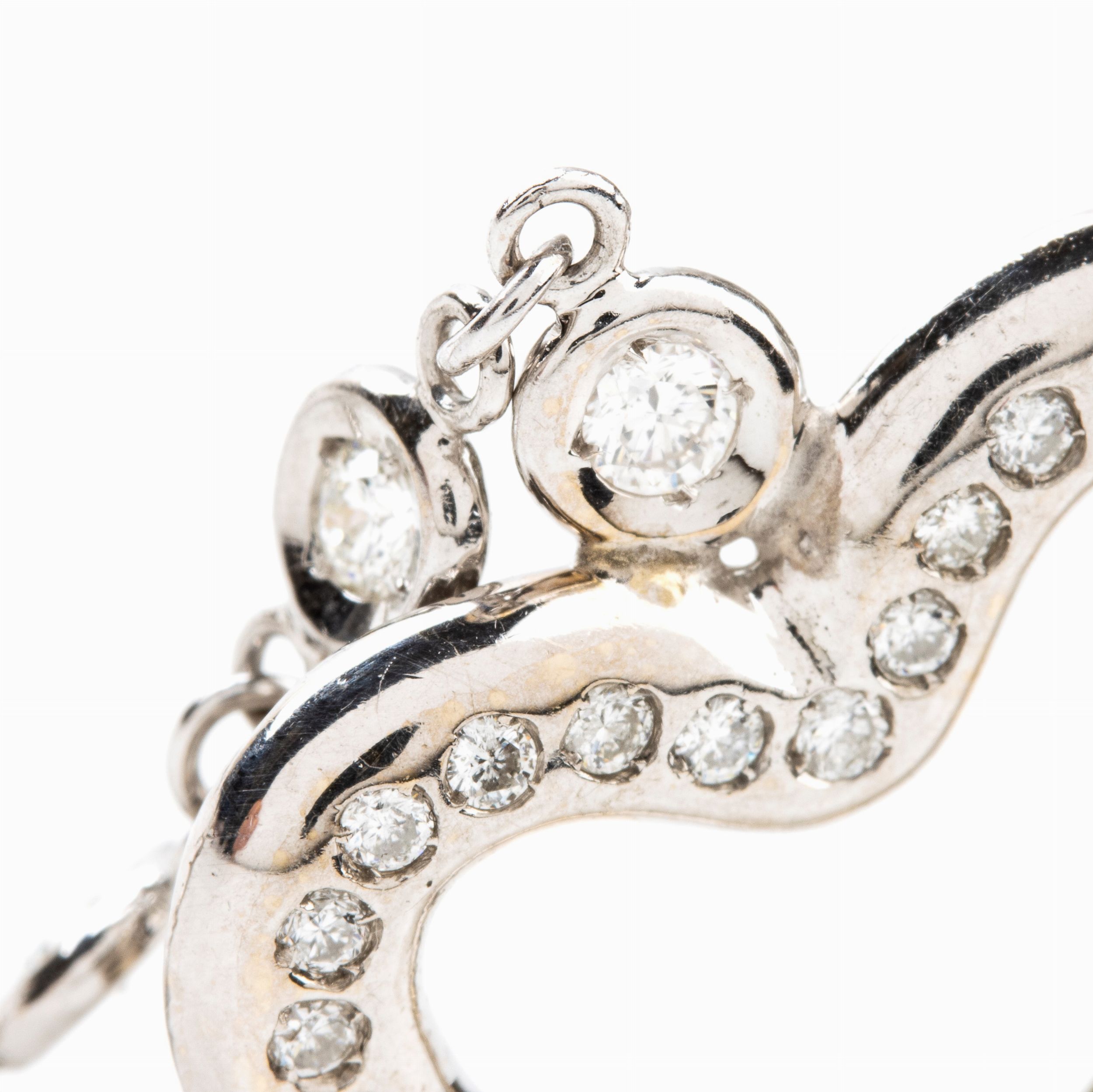 in oro bianco 18k, incastonati con n. 80 diamanti di forma rotonda, taglio a brillante, circa 1.20 ct, G-H, VS-SI.  Punzonati '750'. Lunghezza 8 cm. Peso: 14.3 gr. Stato di conservazione: **** buono.