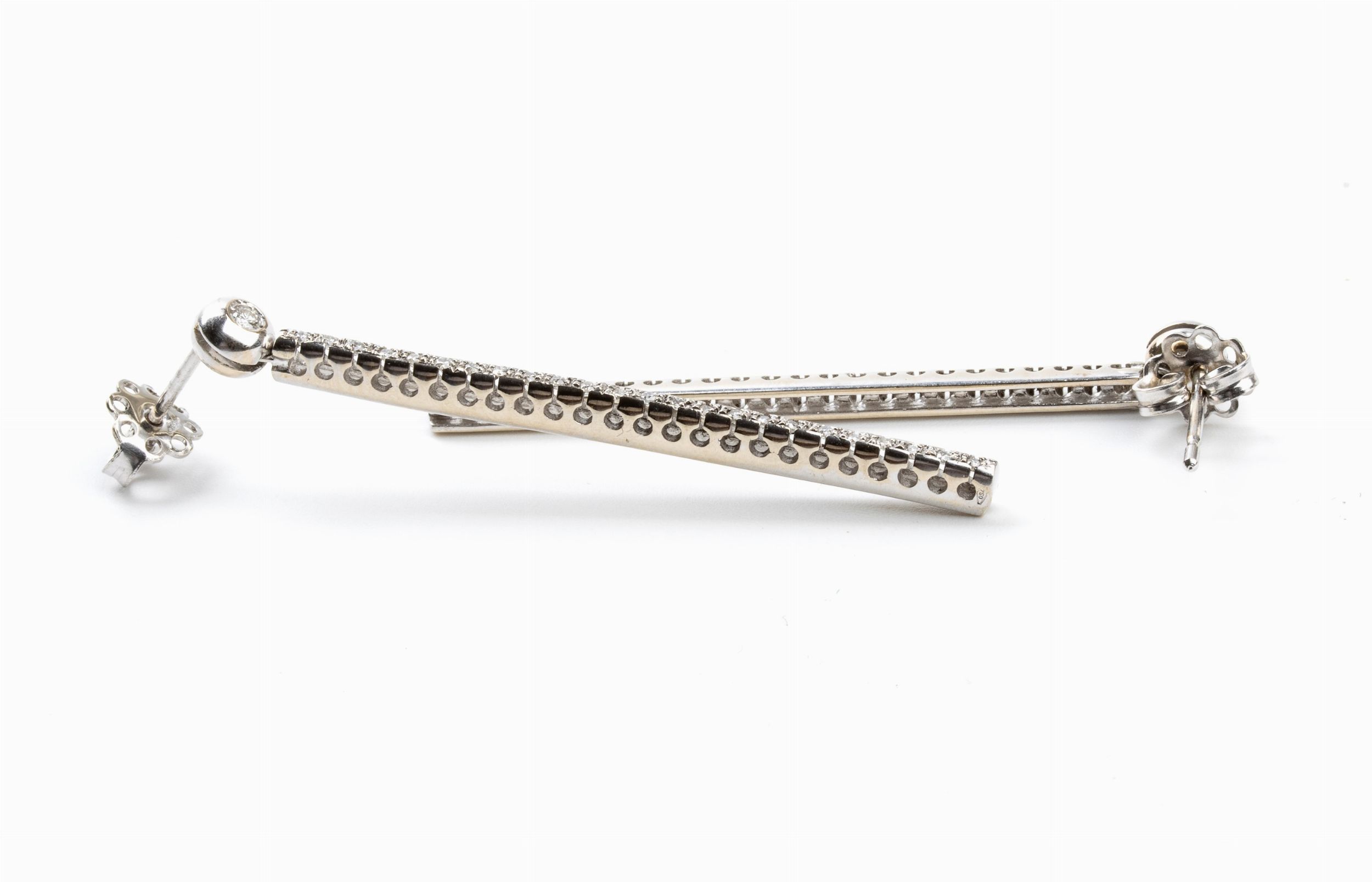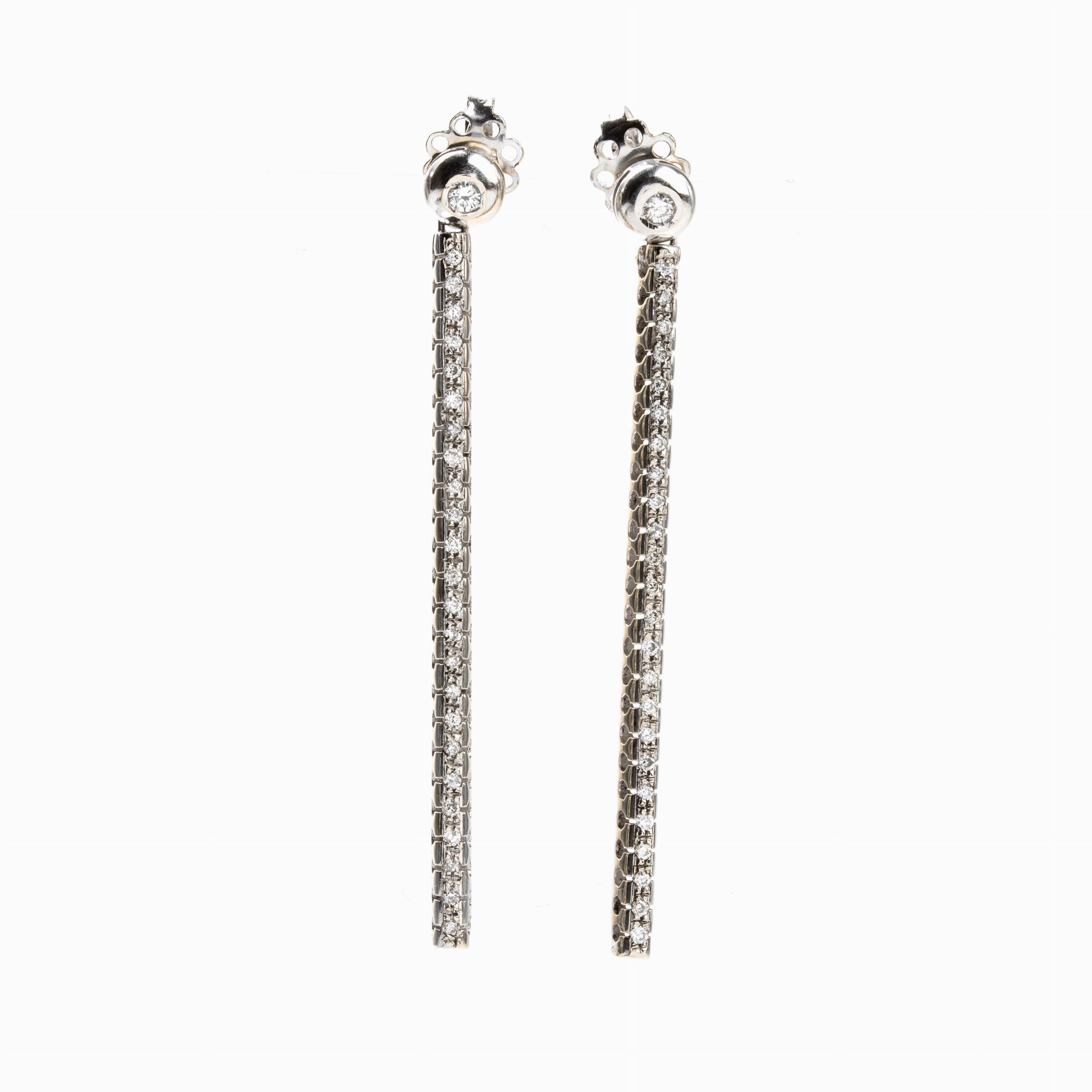 in oro bianco 18k. Ciascuno incastonato con linea di diamanti. N. 50 diamanti di forma rotonda, taglio brillante, circa 0.45 ct, H-J, SI. Punzonati '750'. Lunghezza: 5.5 cm. Peso: 8.6 gr. Stato di conservazione: **** buono.