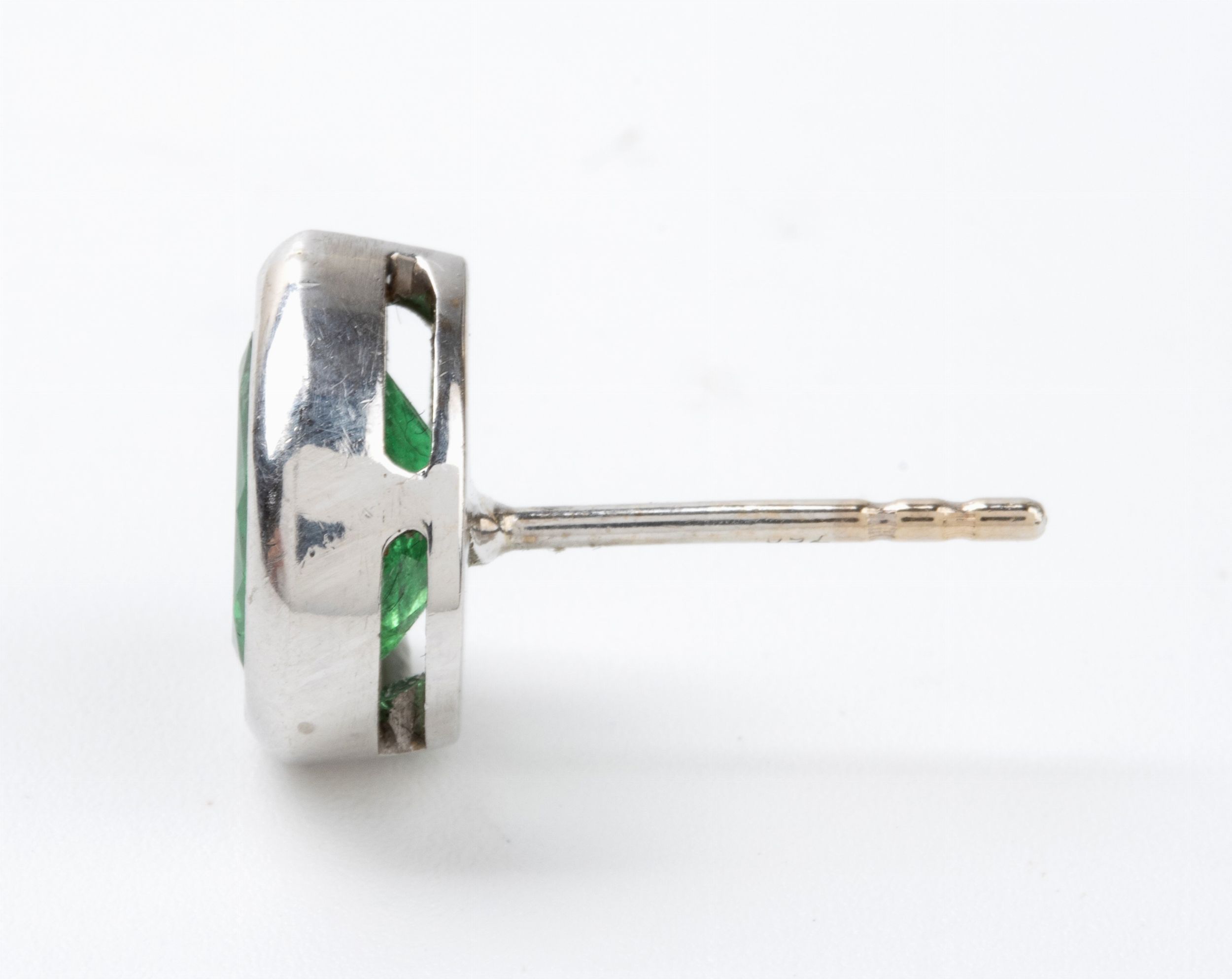 in oro bianco 18k, incastonati con smeraldi. N. 02 smeraldi, forma a goccia, taglio composito, circa 4.40 ct totali.  Punzonati '750'. Peso 6.2 gr. Stato di conservazione: **** buono.