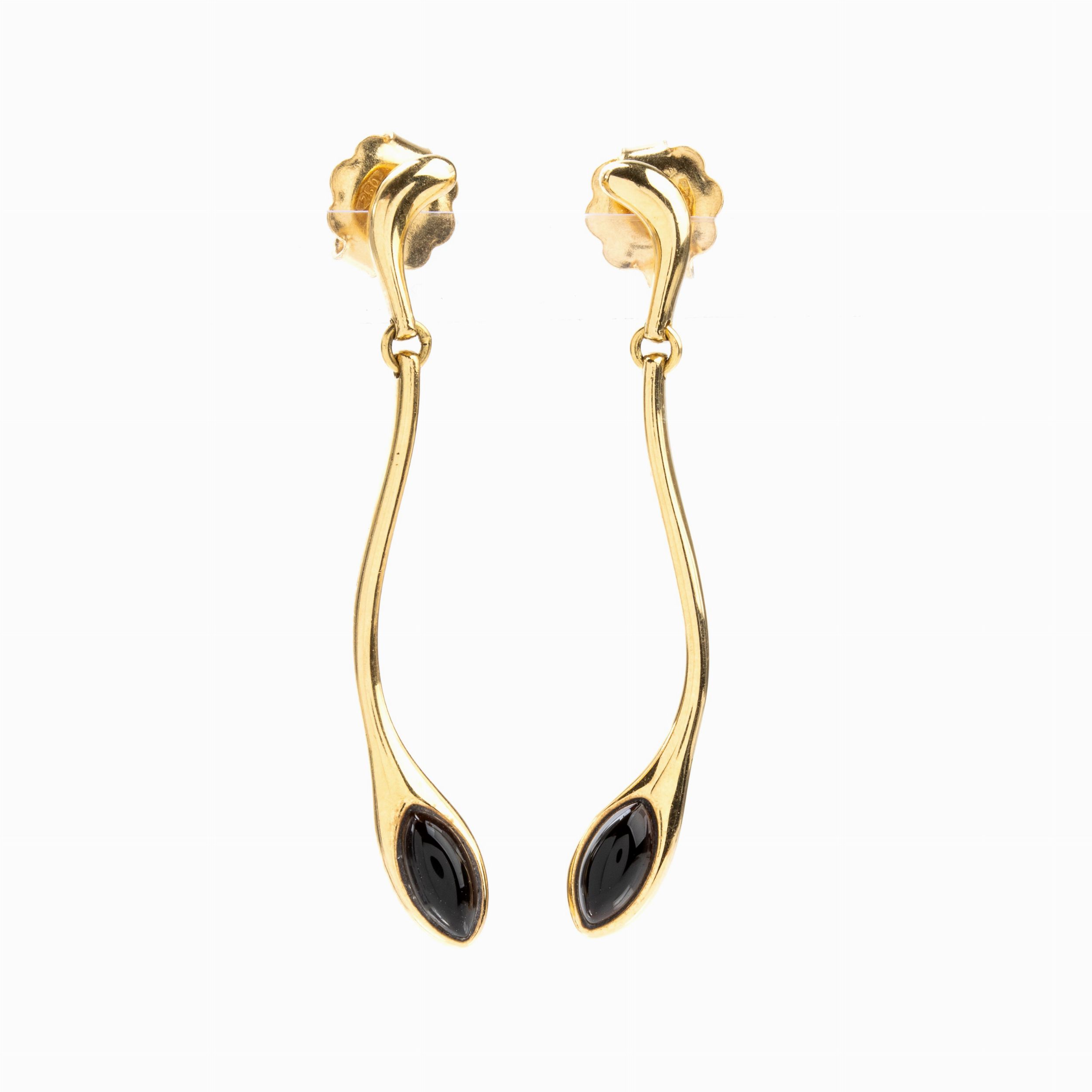 in oro giallo 18k, con terminale incastonato con cabochon di onice. Punzonati 'Tiffany & Co - © Elsa Peretti - 750'. Lunghezza: 4 cm. Peso: 3.8 cm. Stato di conservazione: ***** eccellente.