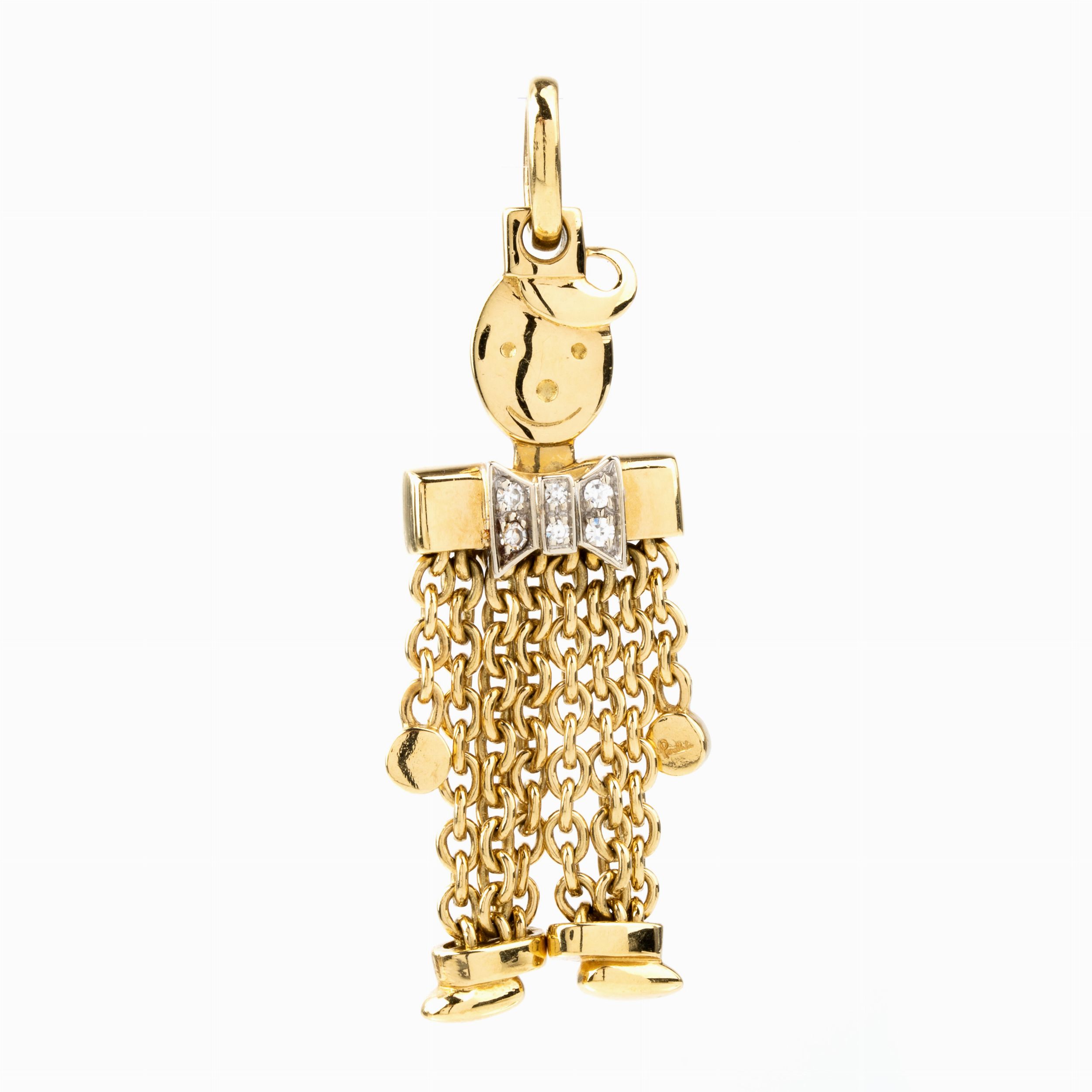 Pendente Pierrot snodato in oro con fiocco in diamanti