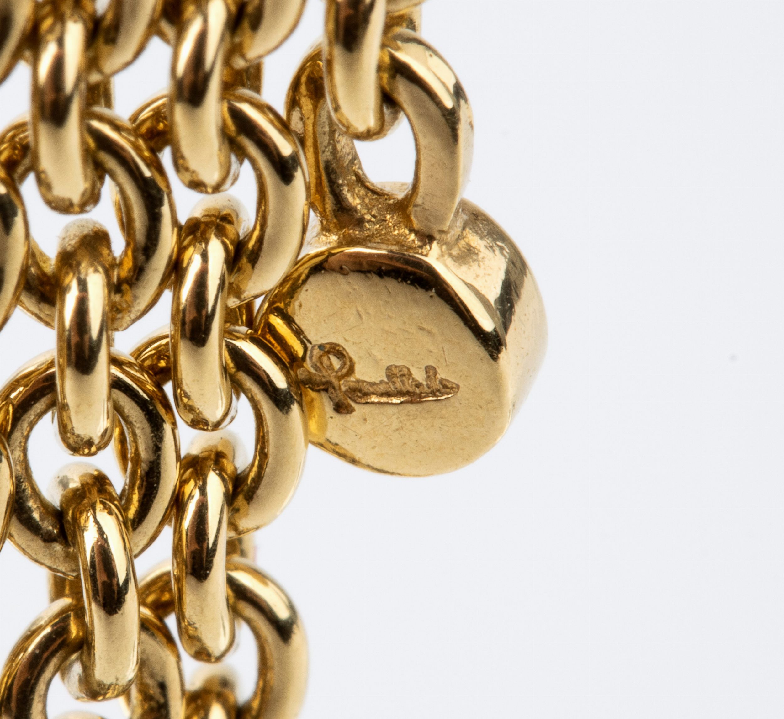 Anni '80 - '90 in oro giallo e bianco 18k. Diamanti taglio huit-huit 0.12 ct.  Lunghezza: 5 cm. Peso: 12.6 gr. Stato di conservazione: ***** eccellente.
