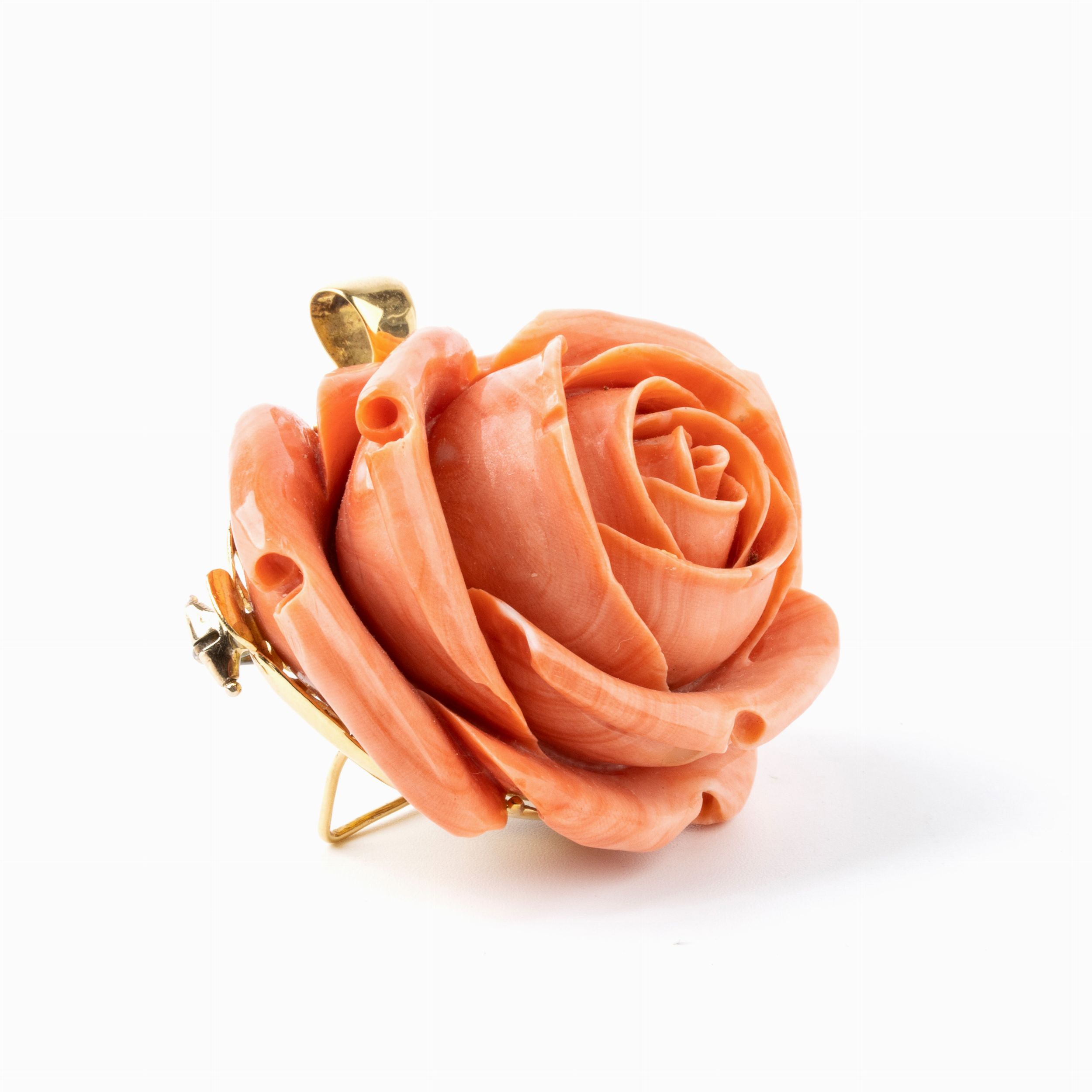 Spilla pendente in oro con corallo cerasuolo scolpito raffigurante un bocciolo di [..]