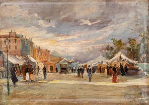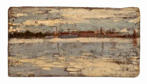 olio su cartone, cm 11 x 19,5 al retro, firmato: P. Fragiacomo