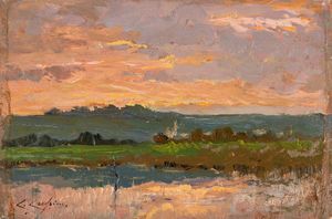olio su compensato, cm 27 x 40 1920 firmato e datato in basso a destra: C. C. TAGLIABUE / 1920
