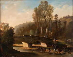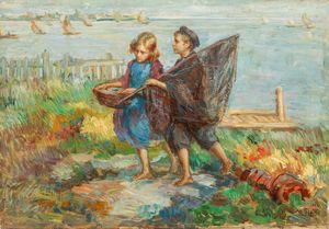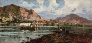 olio su cartone, cm 53,3 x 67 1881 siglato e datato in basso a sinistra: R. B. / 1881  al retro, etichetta [..]