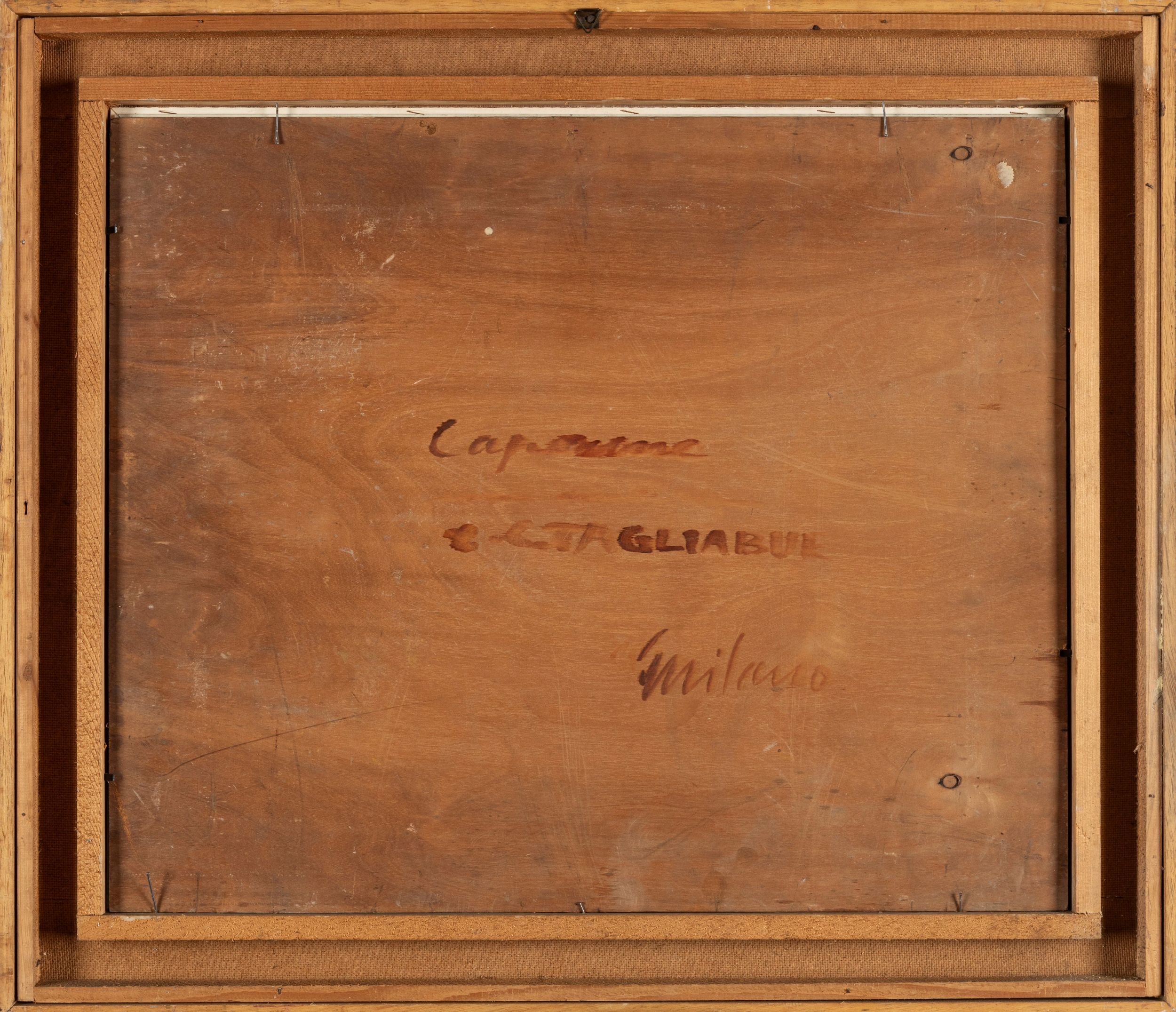 1931 firmato e datato in basso a sinistra: C. C. TAGLIABUE / 1931 al retro, titolato e firmato sul compensato