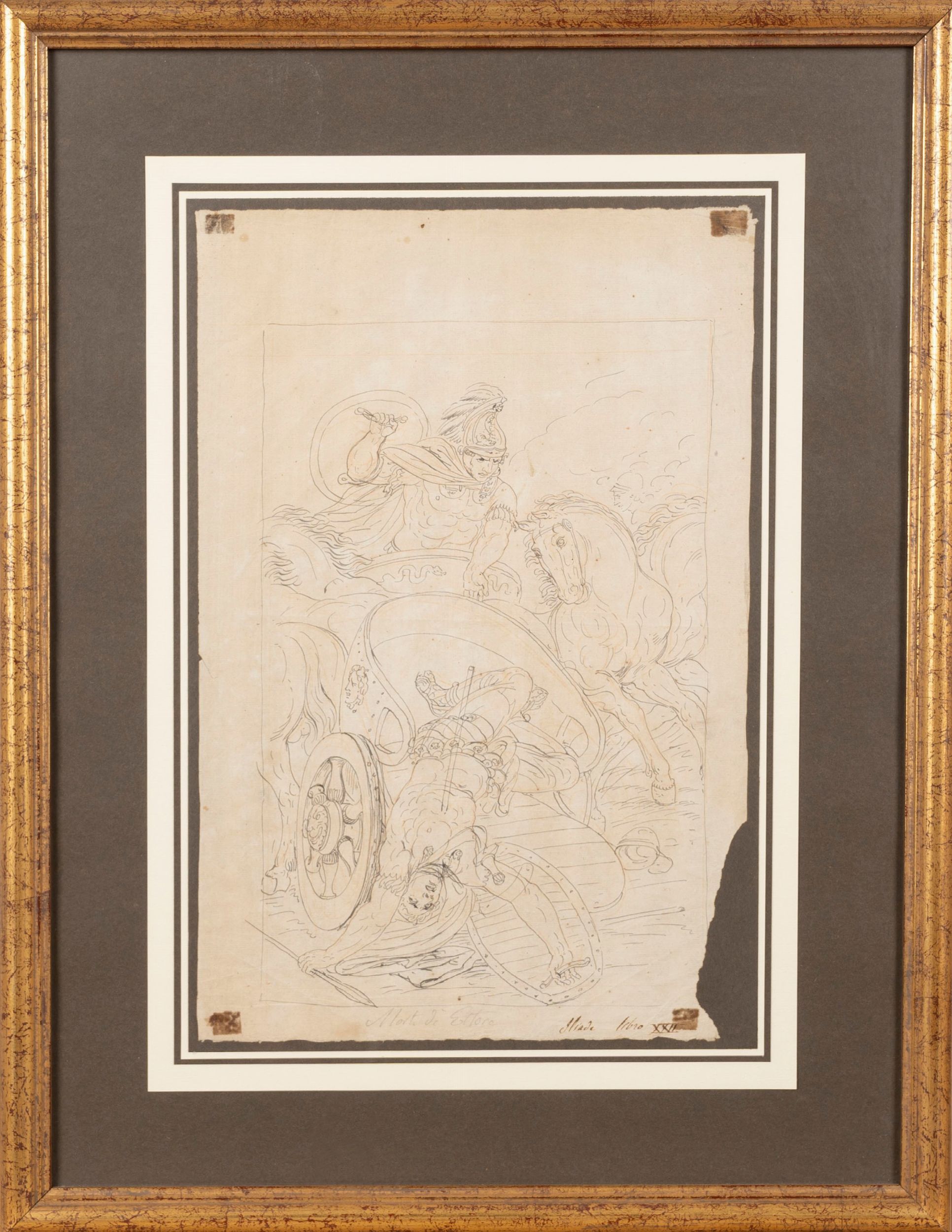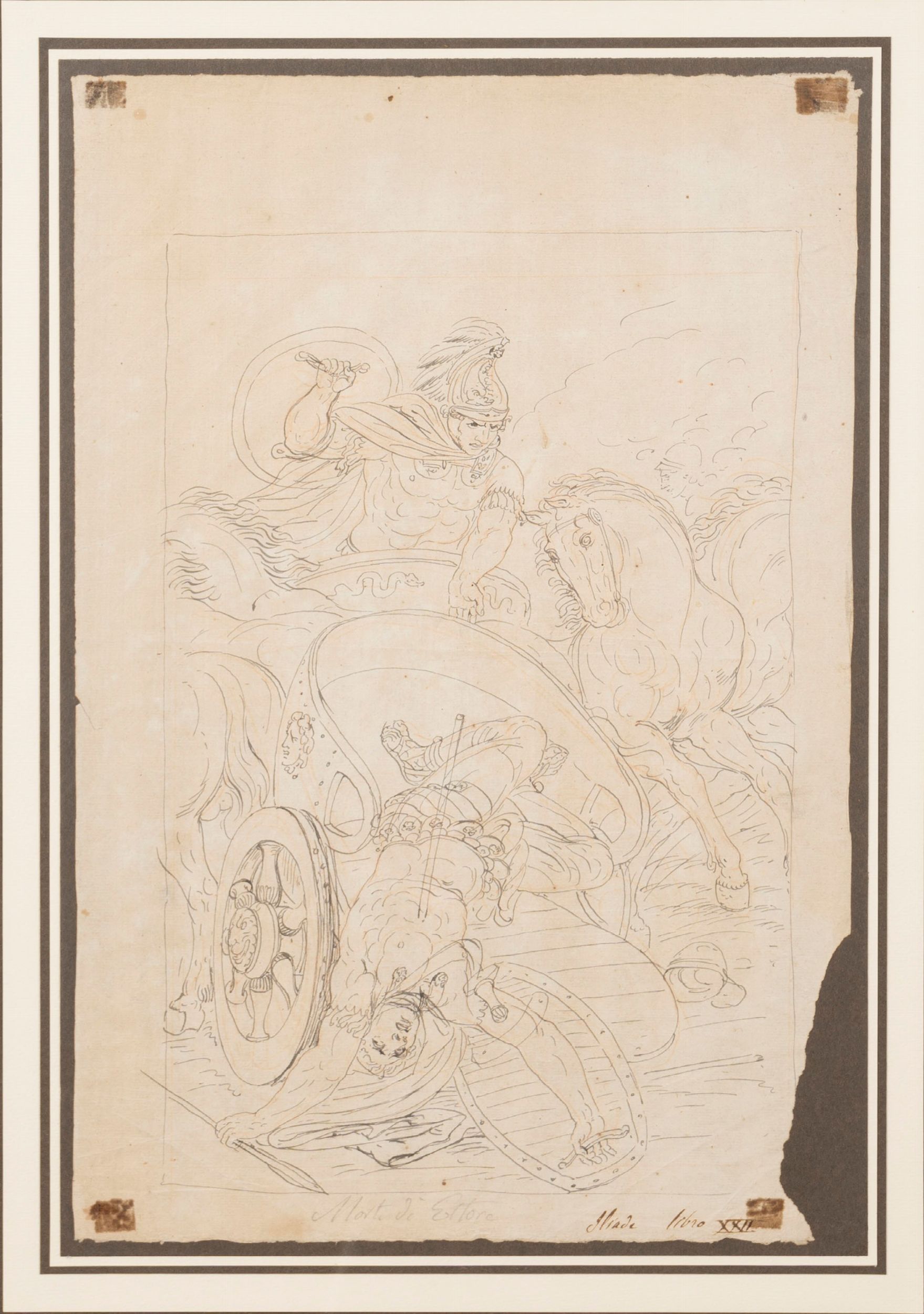 intitolato in basso al centro e a sinistra: Morte di Ettore Iliade libro XXII