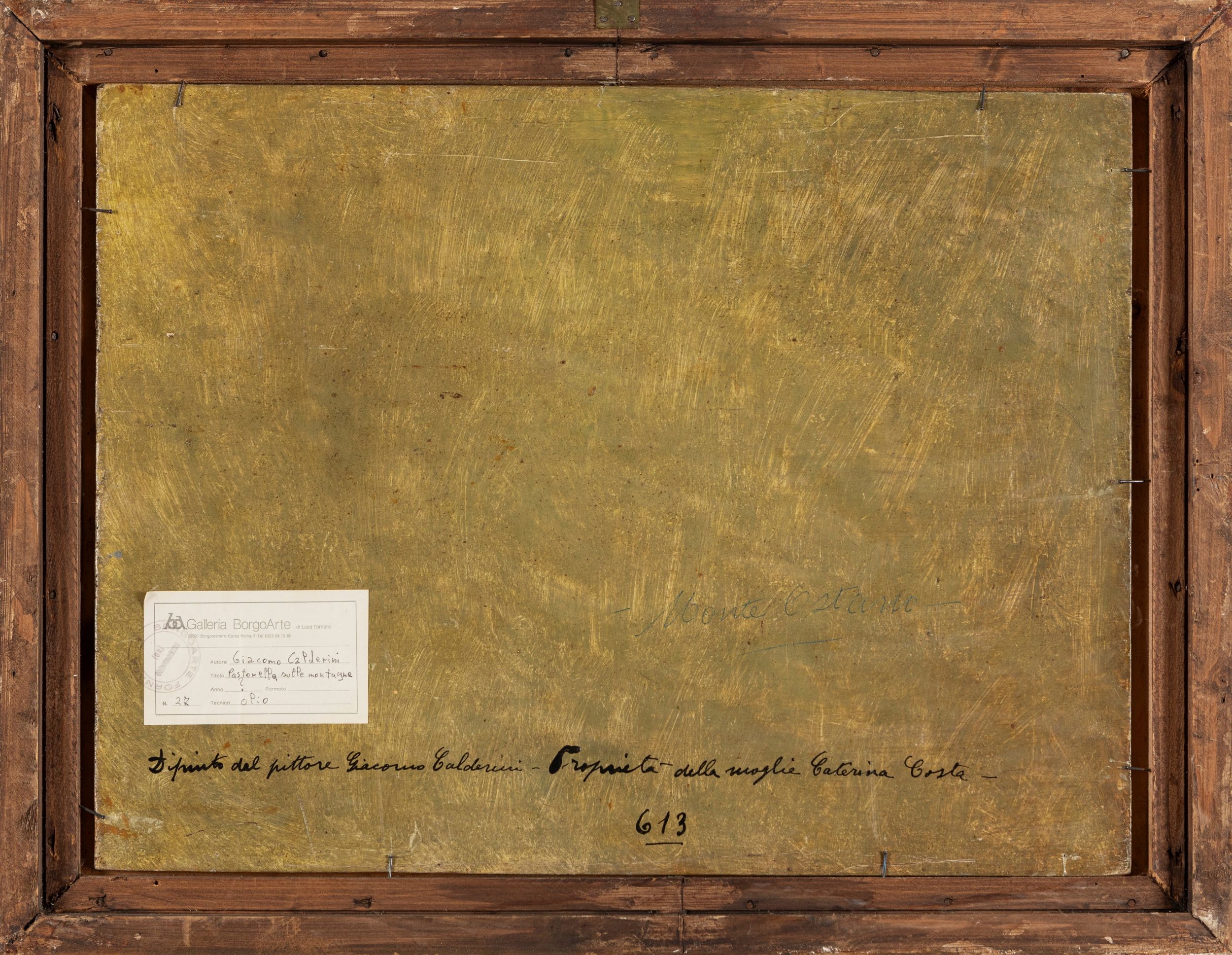 firmato in basso a sinistra: GIACOMO / CALDERINI al retro, titolato sulla tavola; sempre sulla tavola, autentica della moglie, timbro ed etichetta della Galleria BorgoArte di Borgomanero