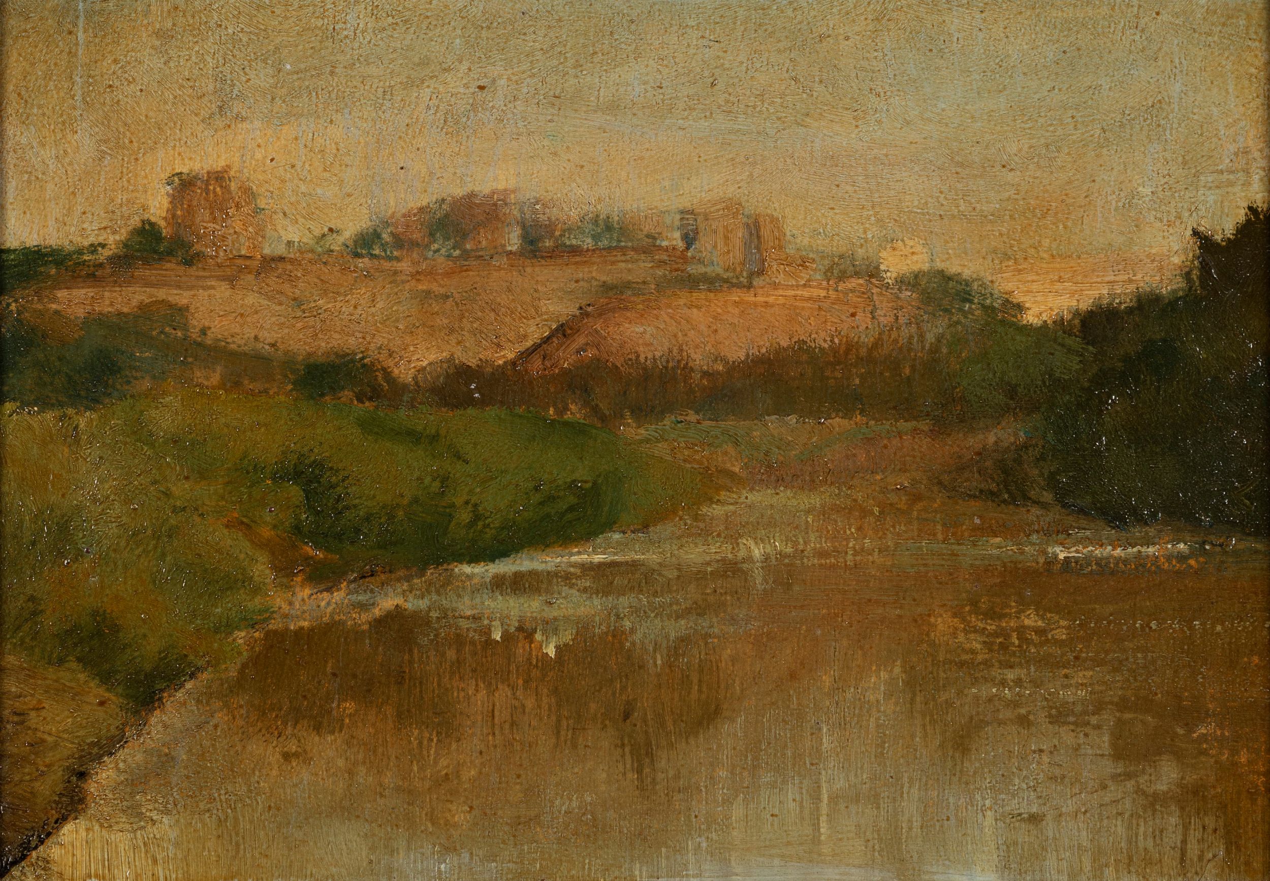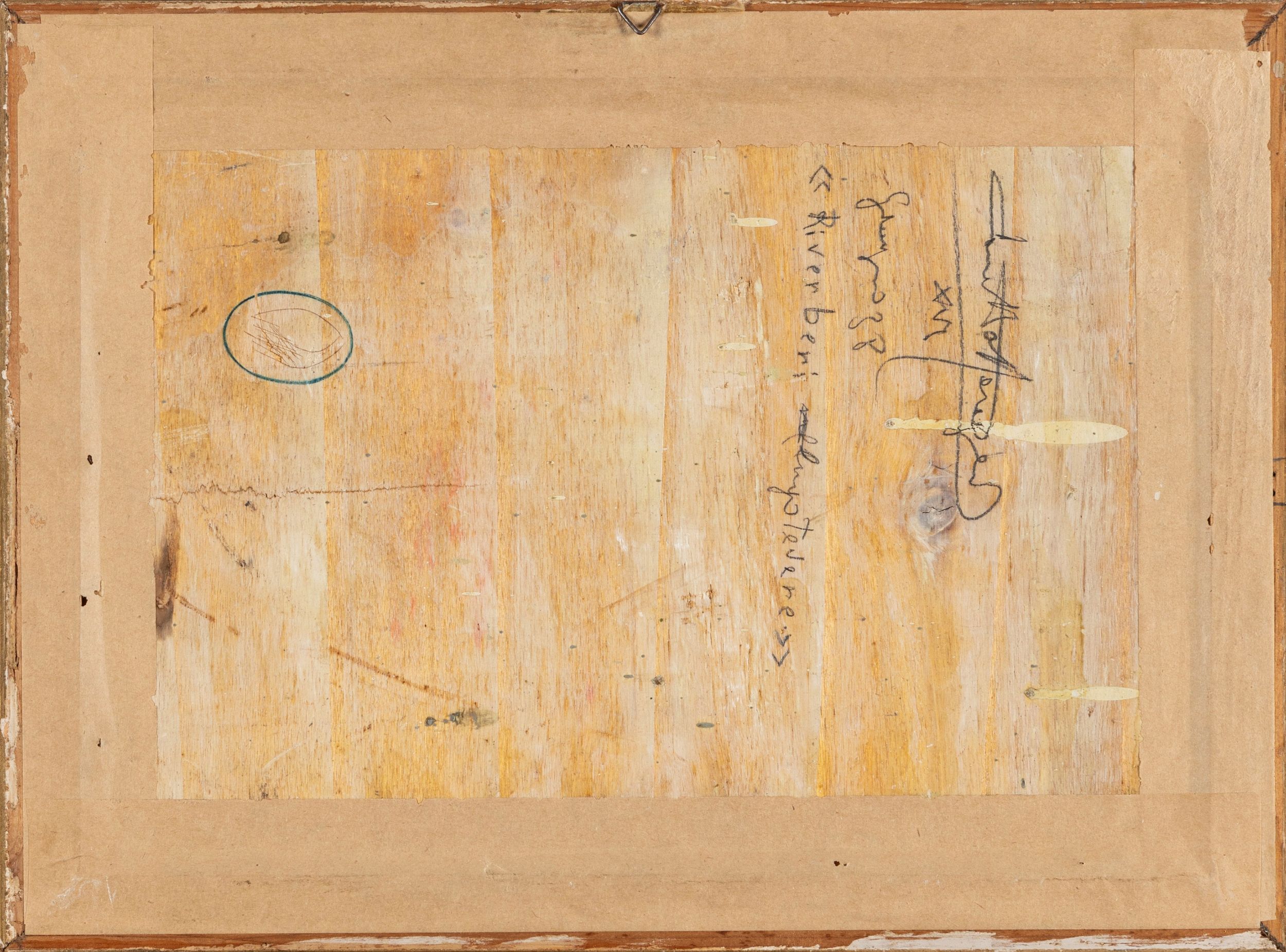 1938 al retro, sul compensato, firmato, datato e titolato: Concetto Maugeri XVI giugno 38 Riverberi sul Lungotevere