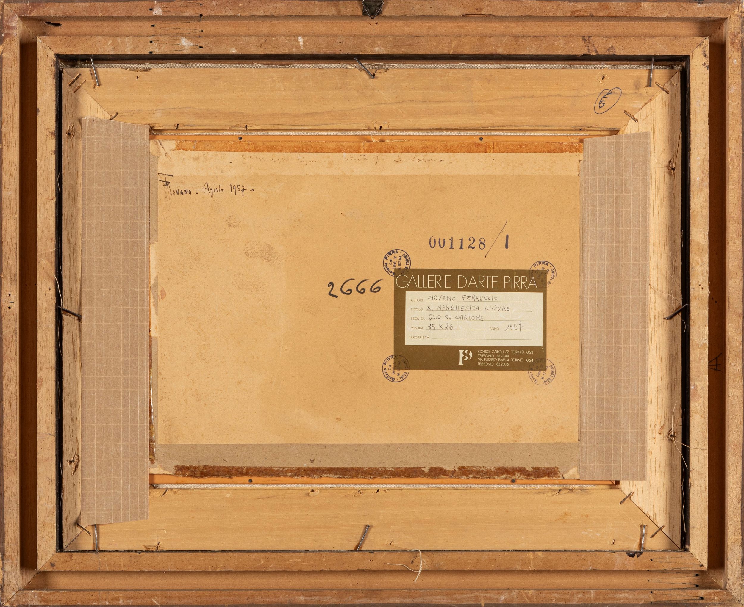 1957 firmato e datato in basso a sinistra: Piovano 57 al retro, firmato e datato sul cartone; timbri ed etichetta della Galleria d'Arte Pirra di Torino