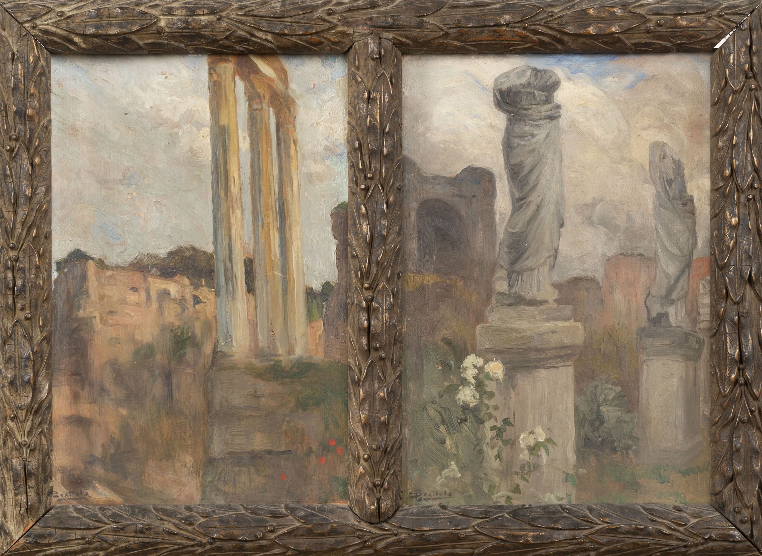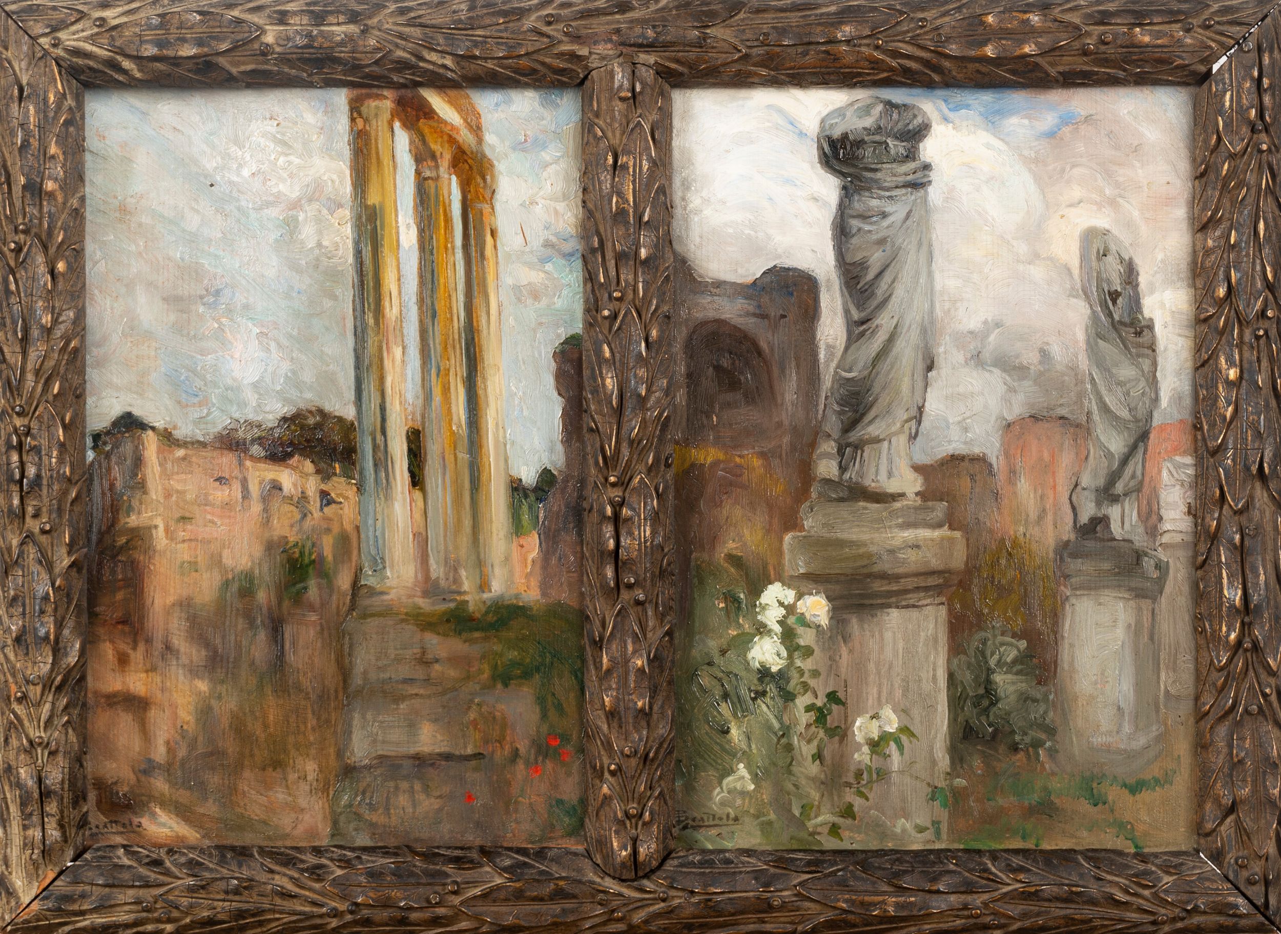 coppia, olio su legno, in un'unica cornice, cm 34,3 x 24 ciascuno