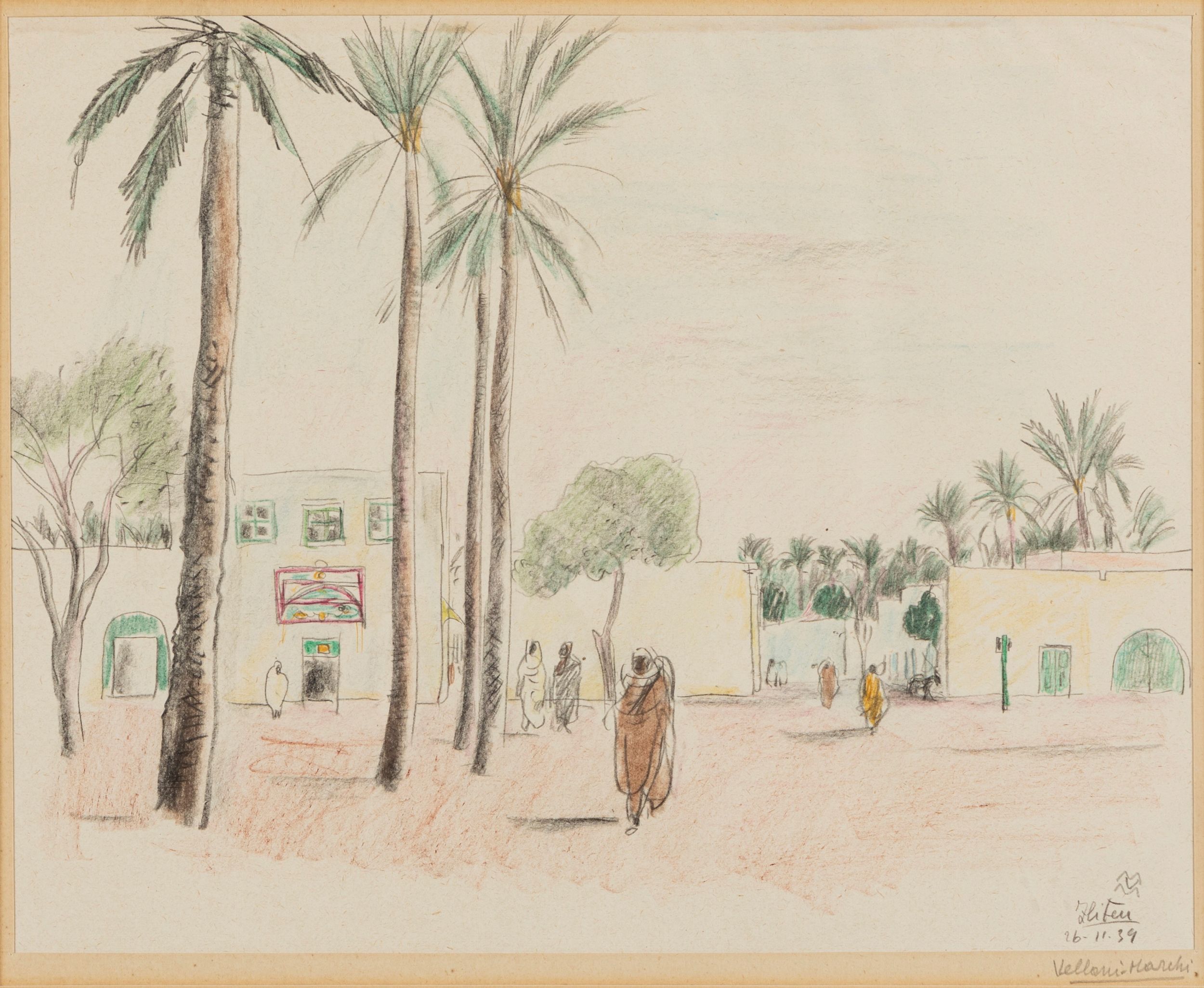 1934 firmato, locato e datato in basso a destra: MVM / Zliten / 26 11 34 al retro, sul cartoncino di chiusura, timbri ed etichetta della Galleria d'Arte Ponte Rosso di Milano