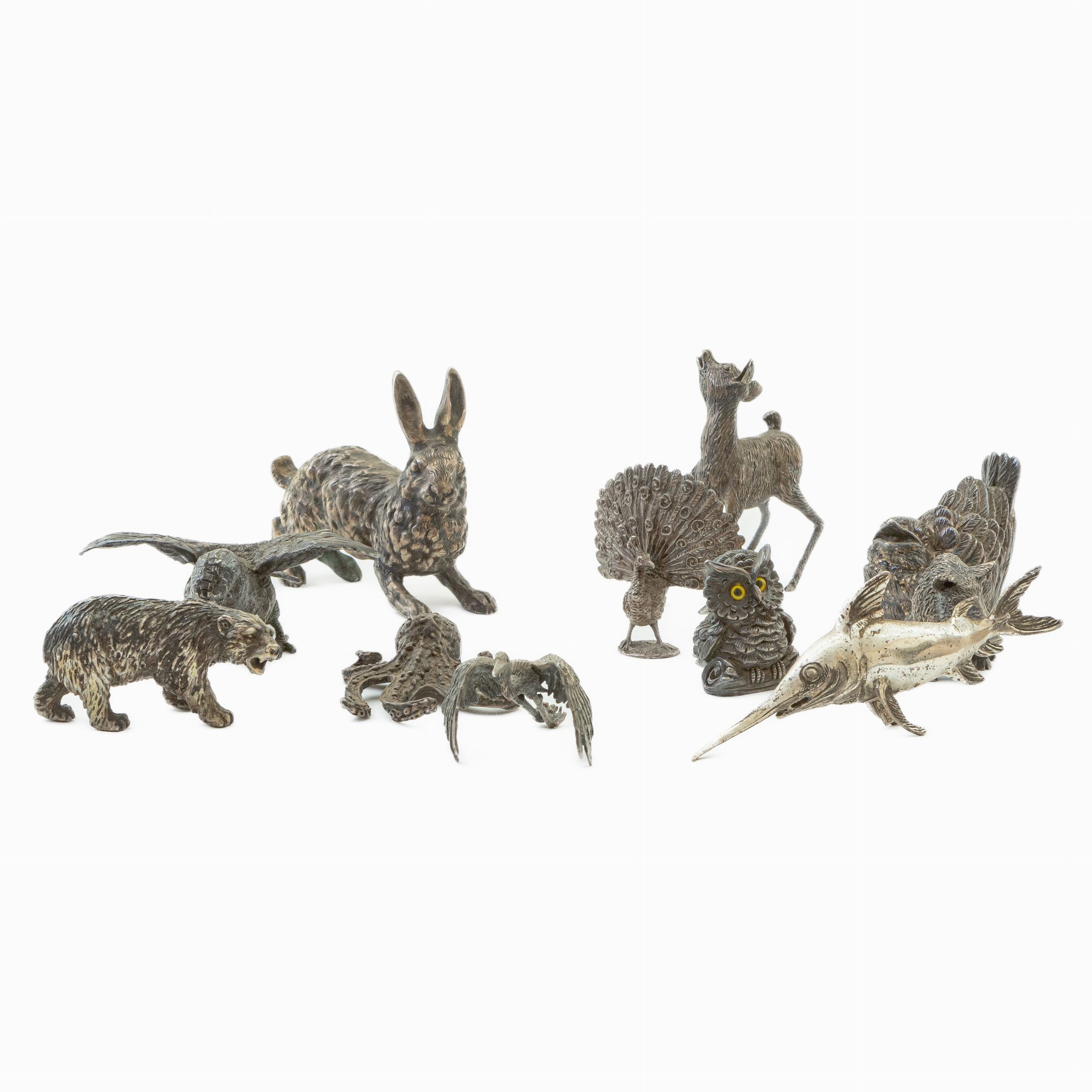 Collezione di sessanta sculture di animali in argentato 800/1000