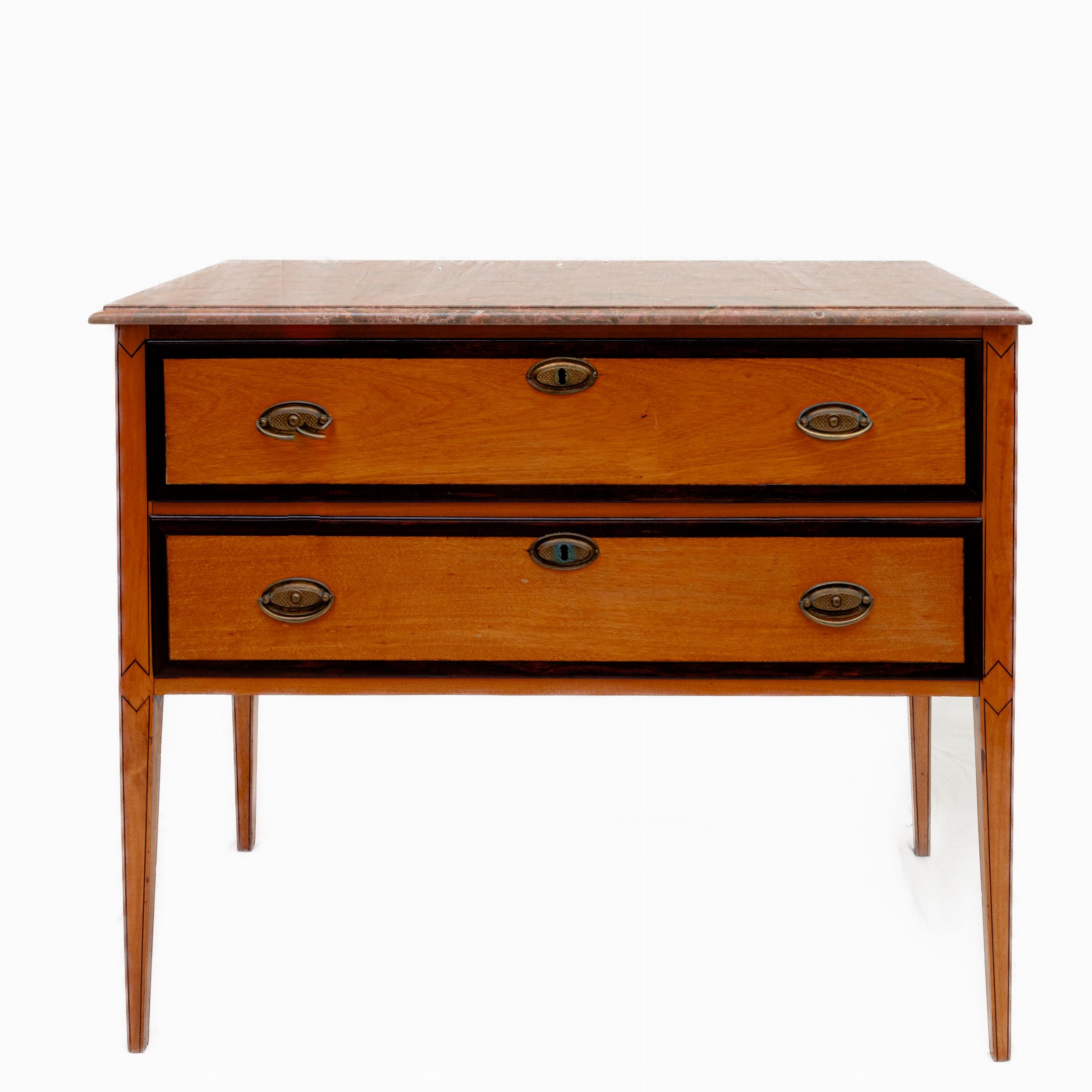 XIX secolo di forma rettangolare in legno a patina bionda, a quattro gambe a tronco di cono con filettature in legno di frutto sul fonte, sui fianchi e sulle gambe, piano in marmo non pertinente