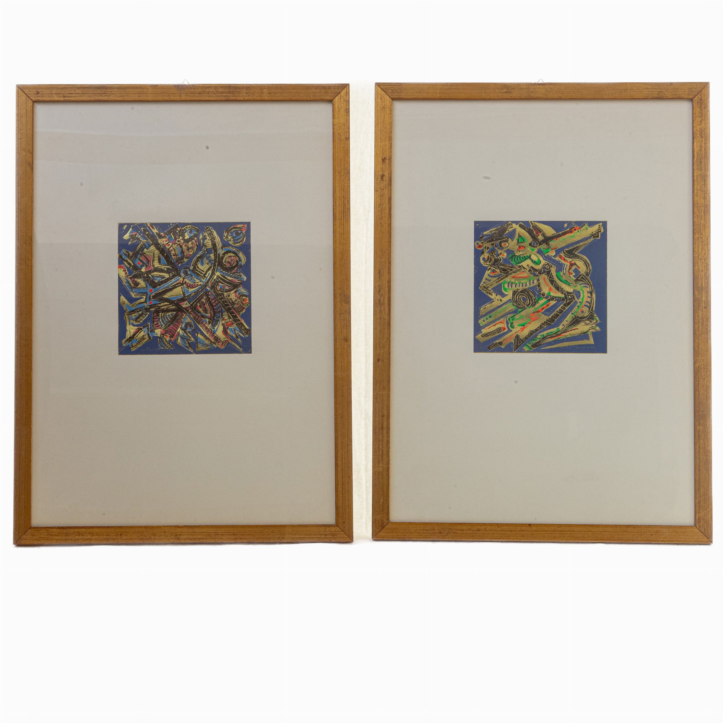 Coppia di lastre su carta a soggetti geometrici concettuali