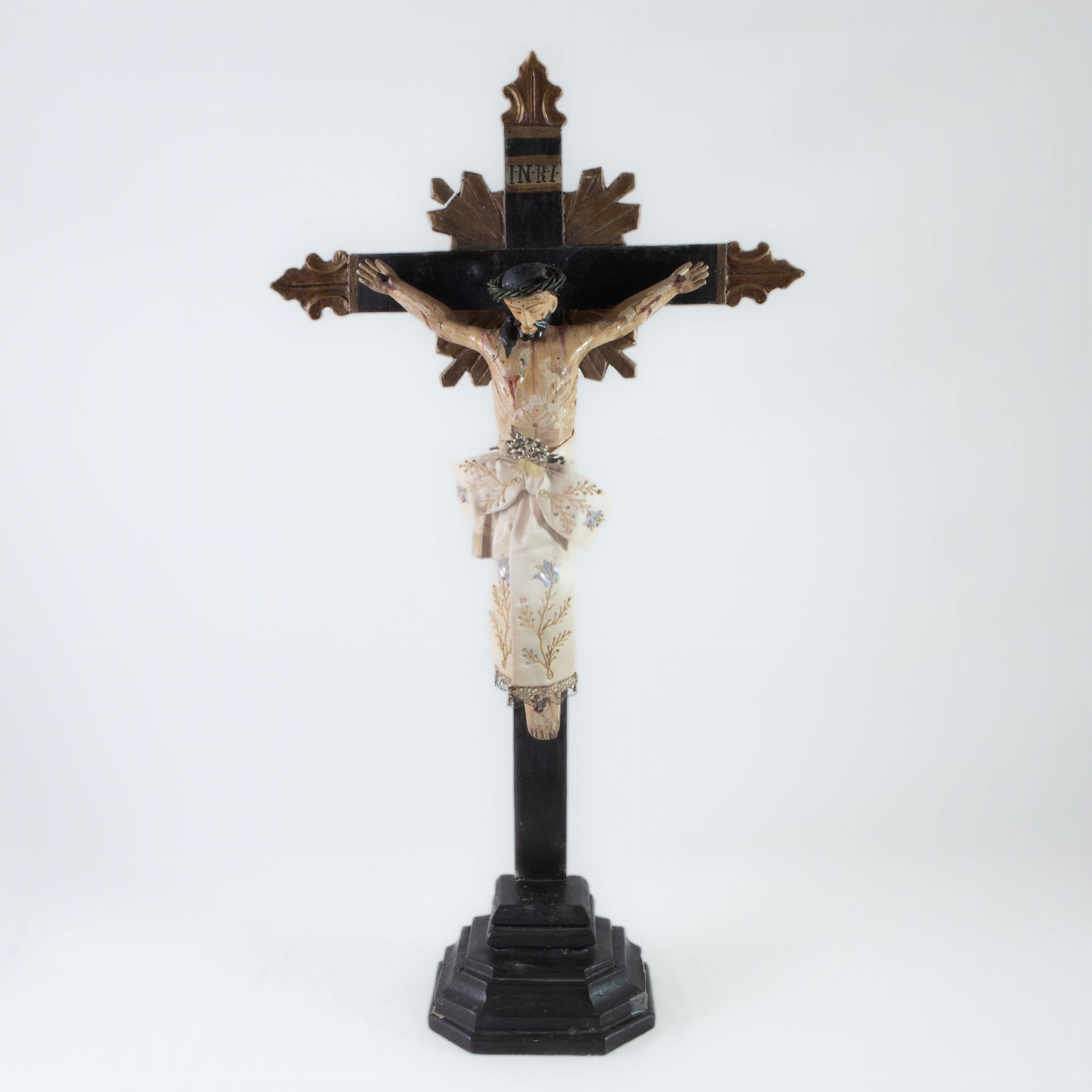 XIX secolo su croce in legno ebanizzato. Manifattura arte popolare portoghese