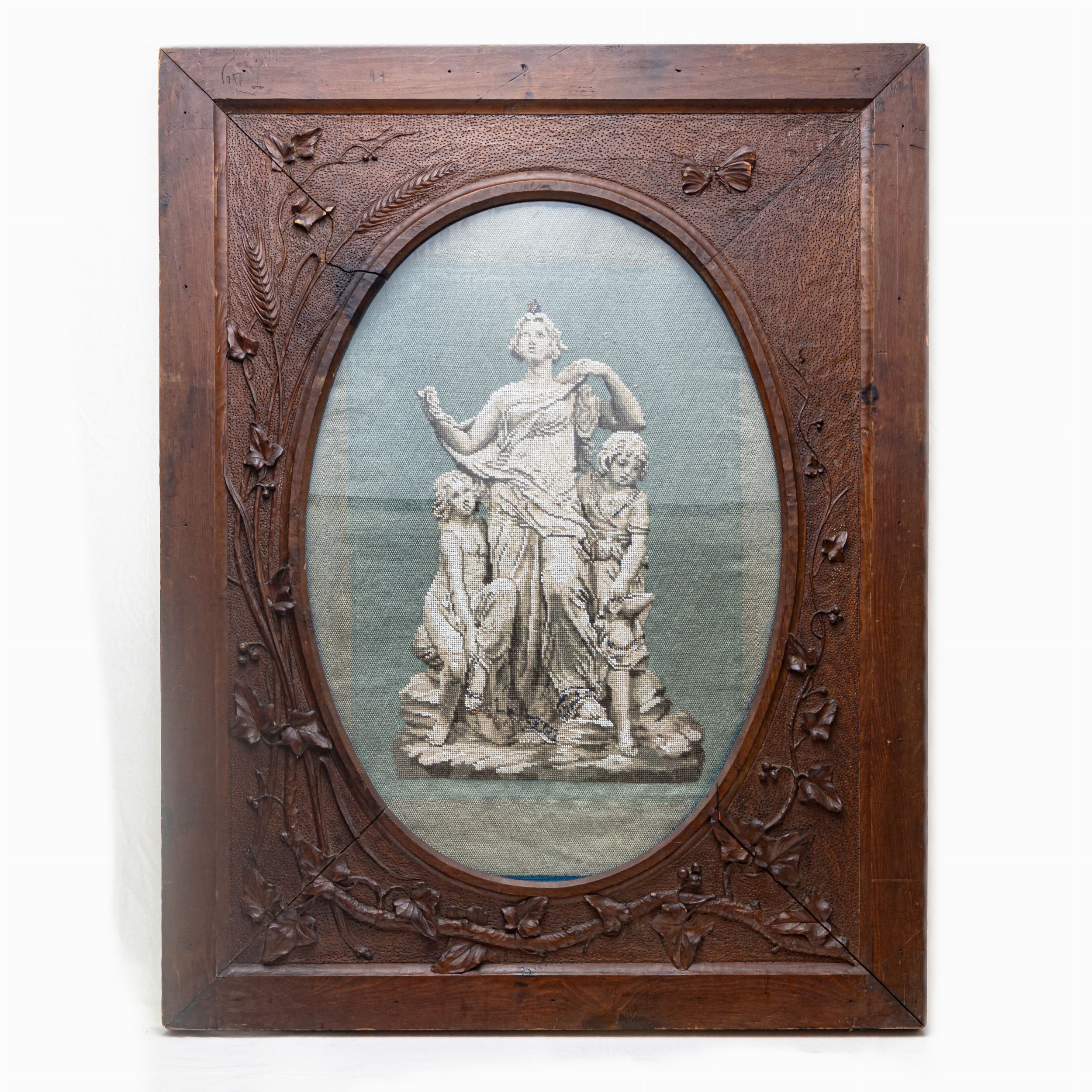 Francia, fine XIX secolo entro cornice in legno ad assetto ovale con decorazioni di farfalle ed elementi vegetali.