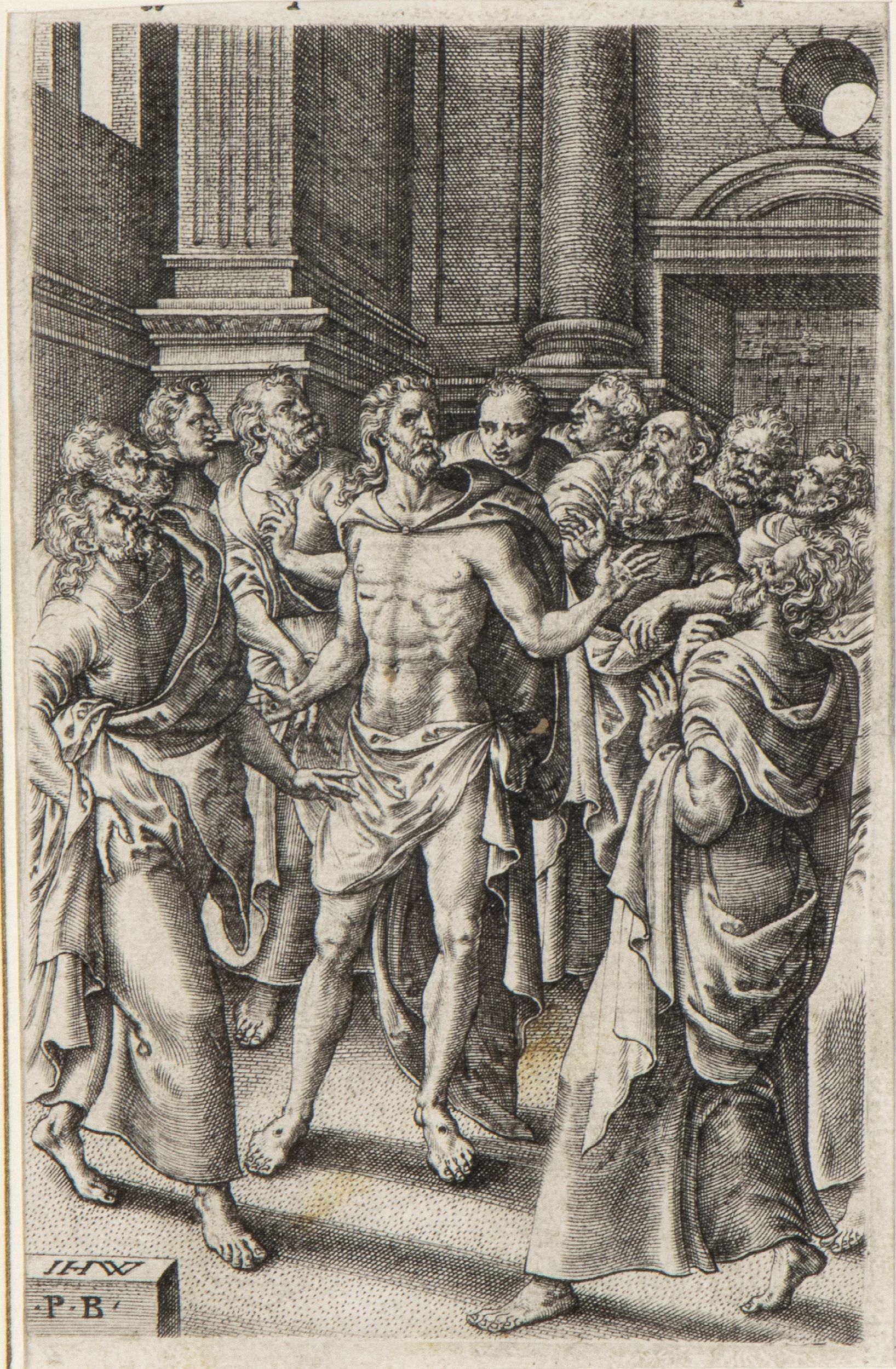 da Pieter van der Borcht, bulino, 120 x 80 mm ca., tratta da  'Humanae Salutis Monumenta', bella impressione, con cornice e passe-partout (37 x 28 x 1 cm). La stampa  non è stata esaminata fuori dalla cornice