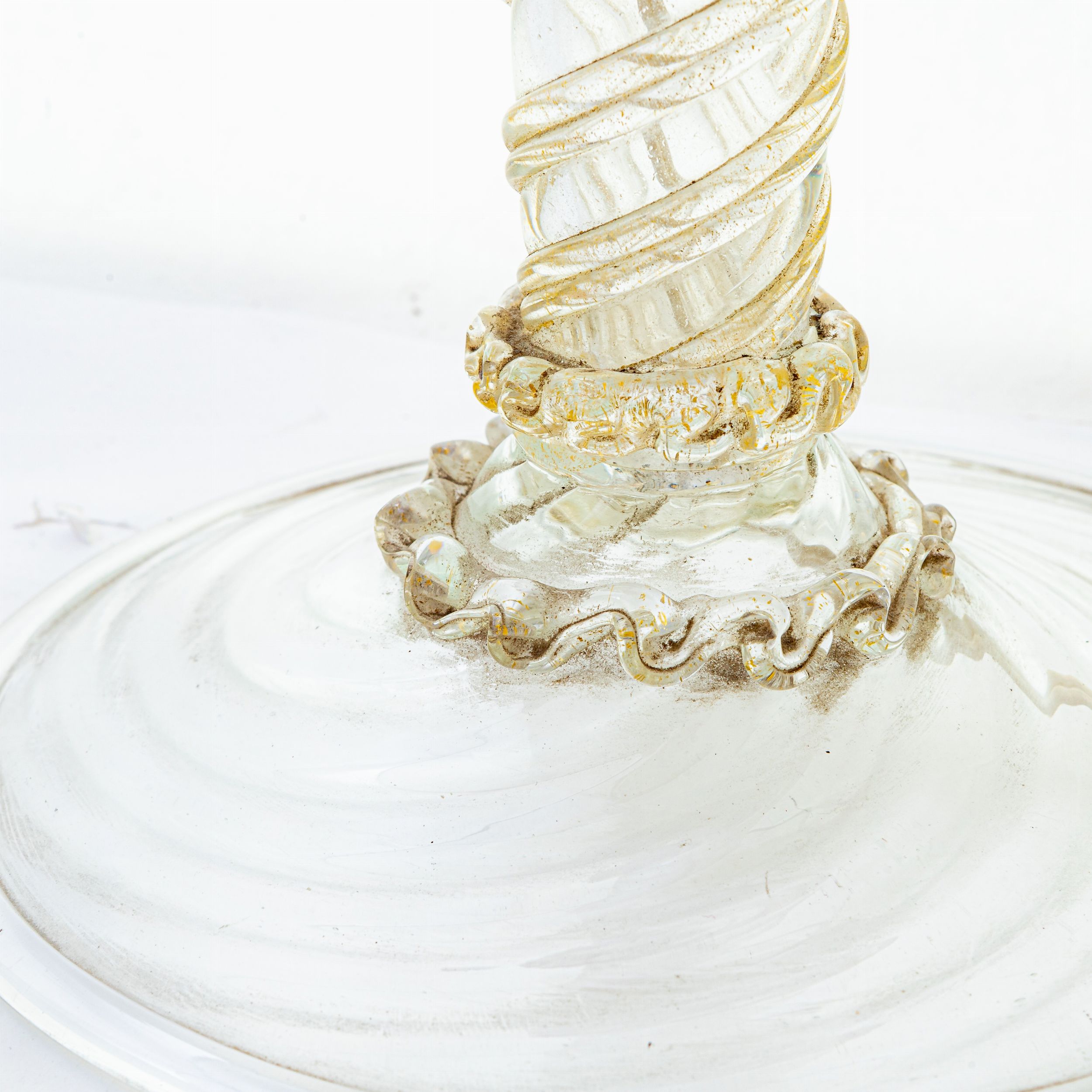 Murano anni '30 con piede a disco, corpo troncoconico desinente con ampolla porta lampade.
