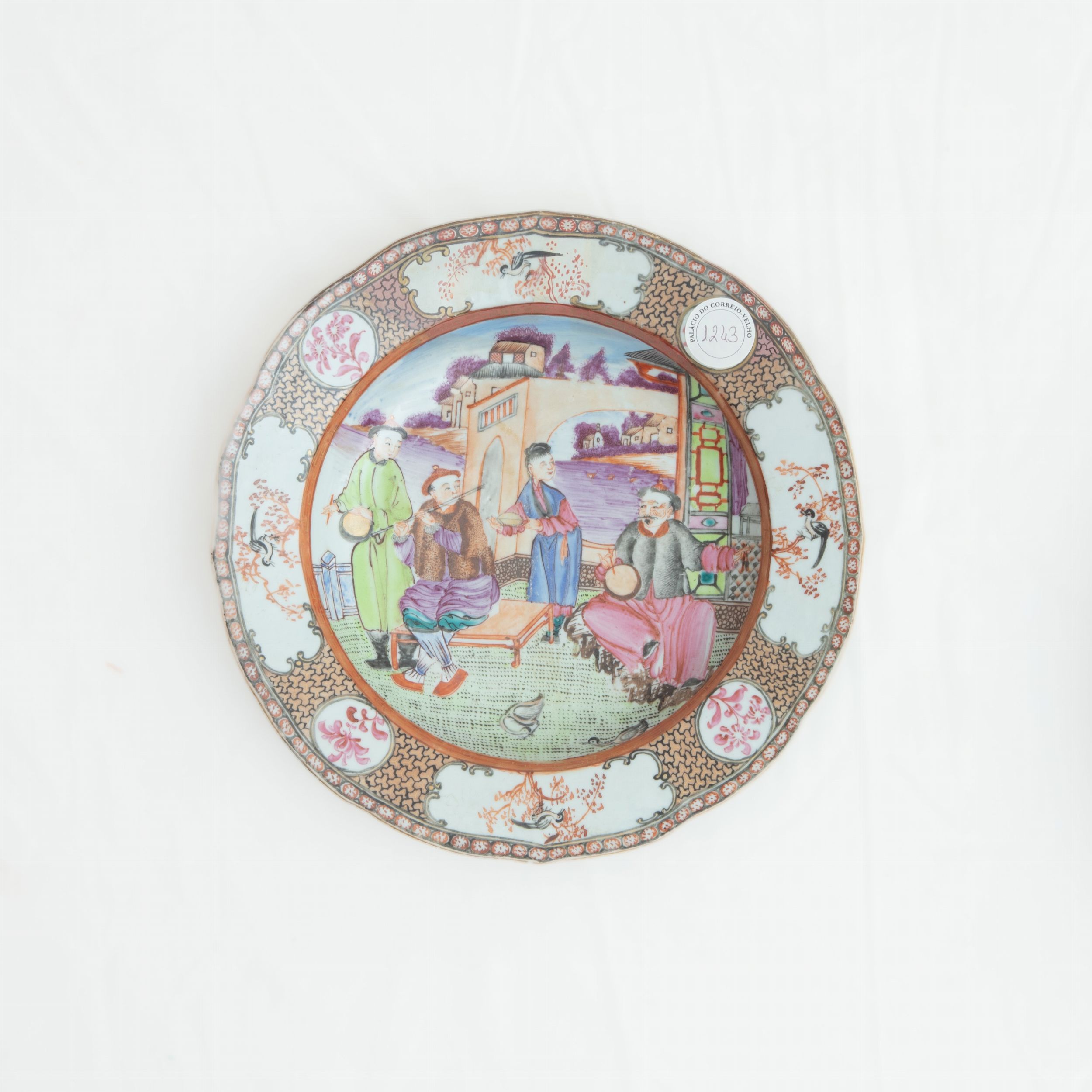 Lotto quattro piatti in porcellana policroma,