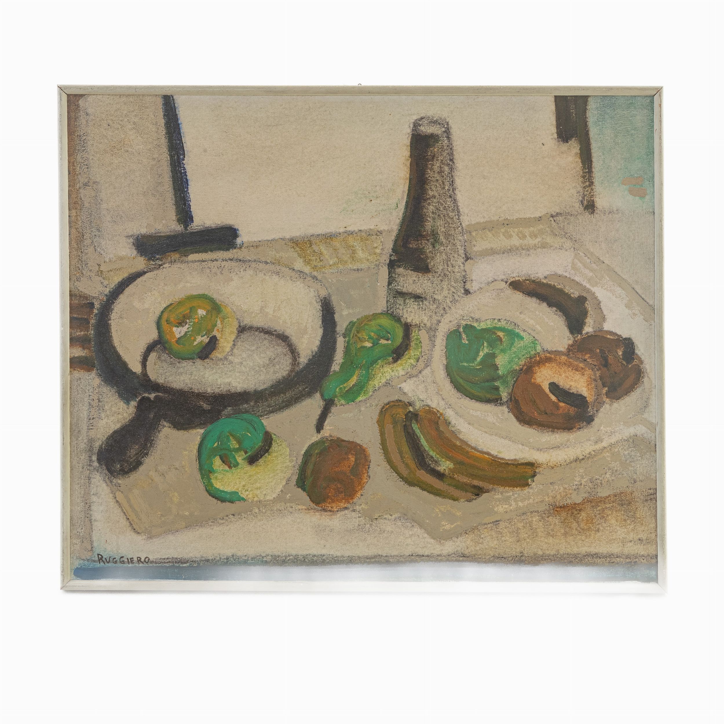 Natura silente con frutta e vasellame