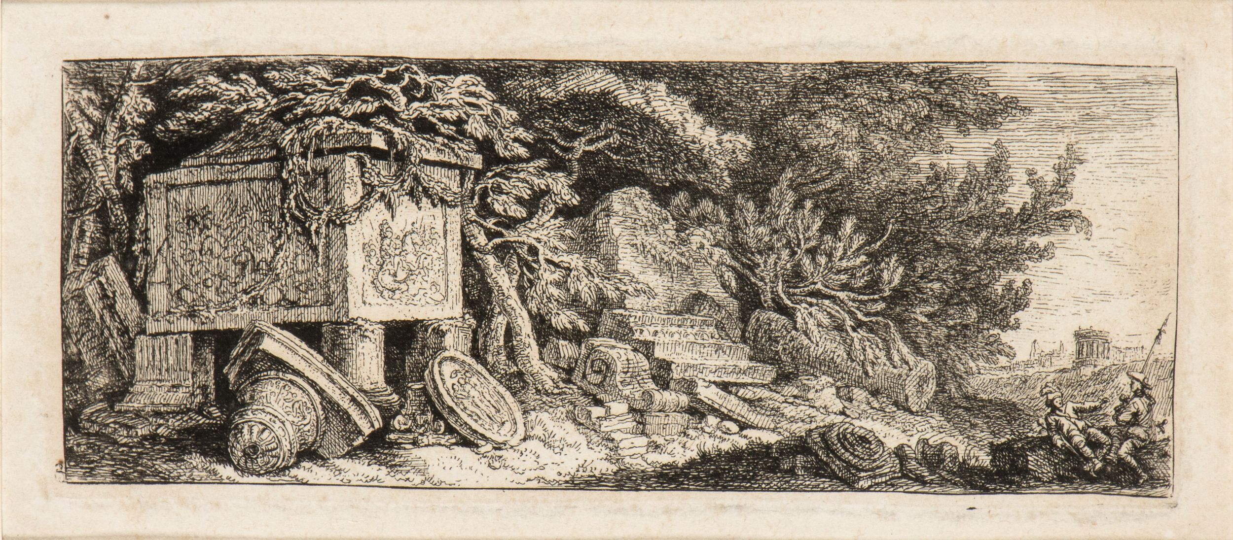 acquaforte, 71 x 180 mm, bella impressione su carta vergata, con i margini, con passe-partout, vetro e cornice (39 x 54 x 2 cm)