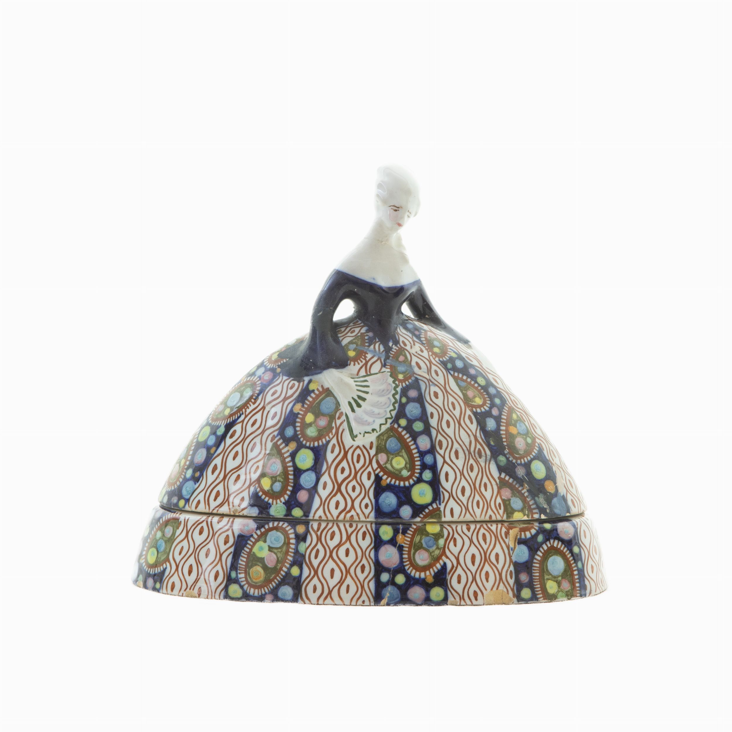 a forma di dama. Firma della manifattura in blu sotto smalto alla base Condizioni: restauri e piccole mancanze alla base.